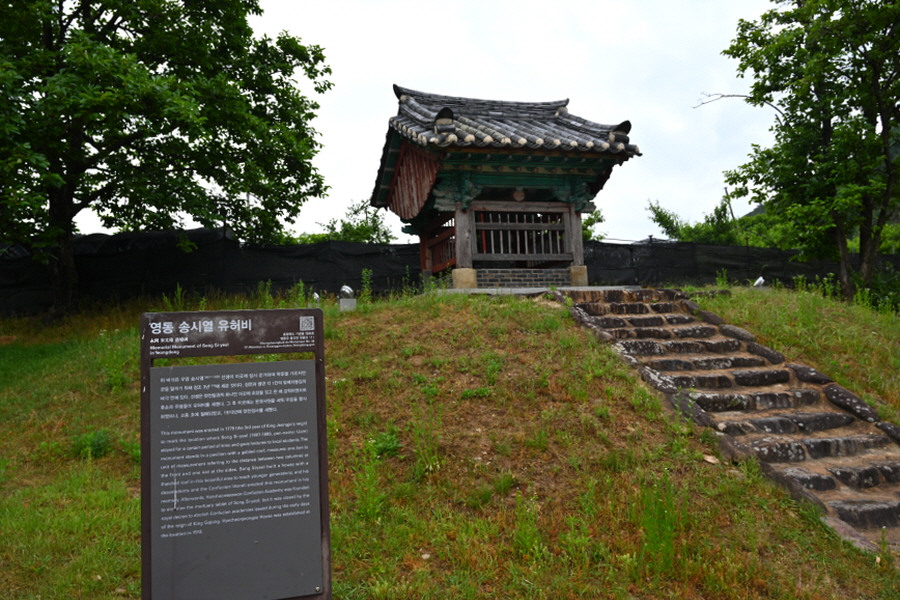초강천을 끼고 조성된 덱 길은 큰 느티나무 앞에서 오른쪽으로 갑니다. 덱 길을 벗어나면 송시열 유허비를 지납니다.