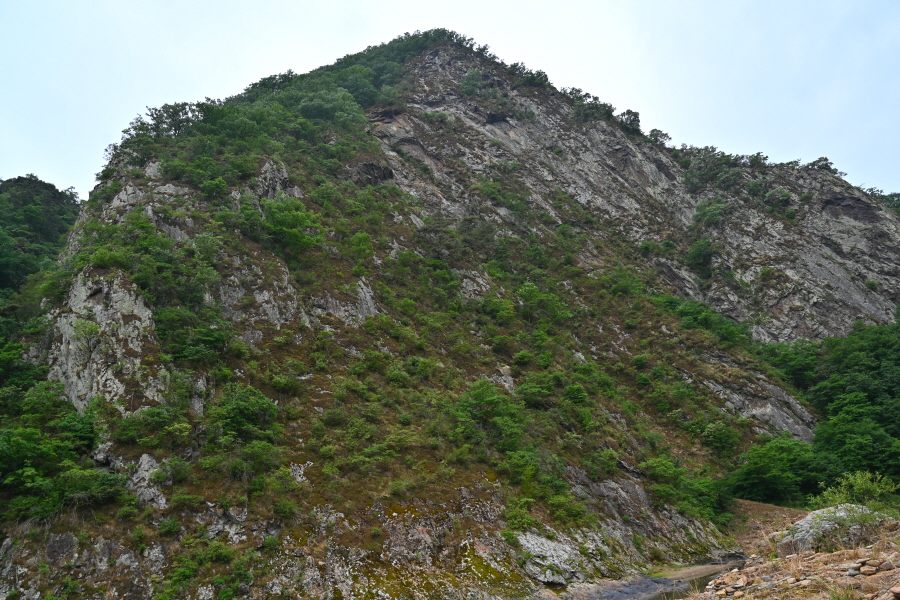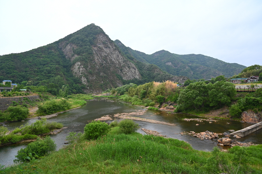 다리 오른쪽에는 초강천에서 월류봉으로 치솟은 200미터 암벽이 ‘산양벽(山羊壁)’입니다.