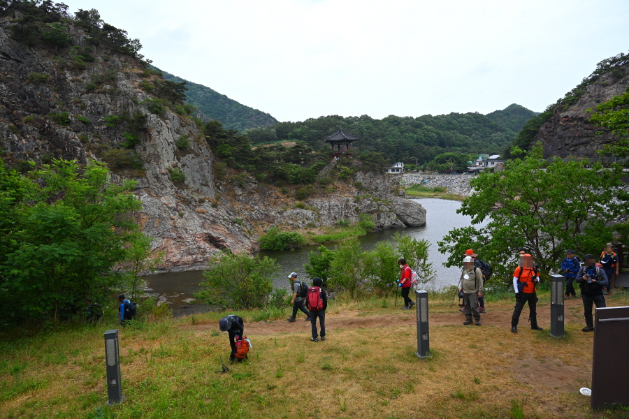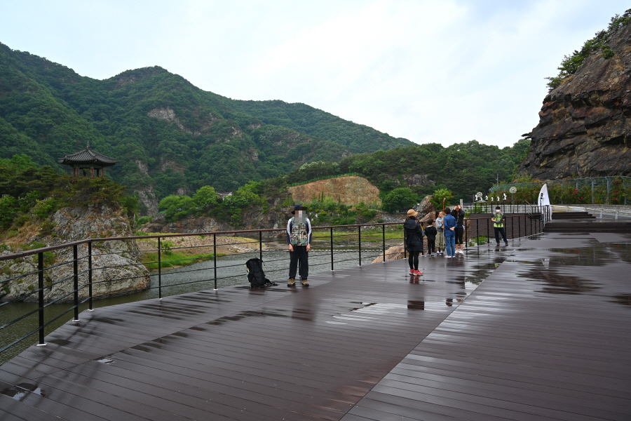 월류봉 산양벽 화헌악 청학굴 법존암 용연대 사군봉 한천정사이며, 월류봉 광장과 둘레길에서 일부지만 보며 걷습니다.