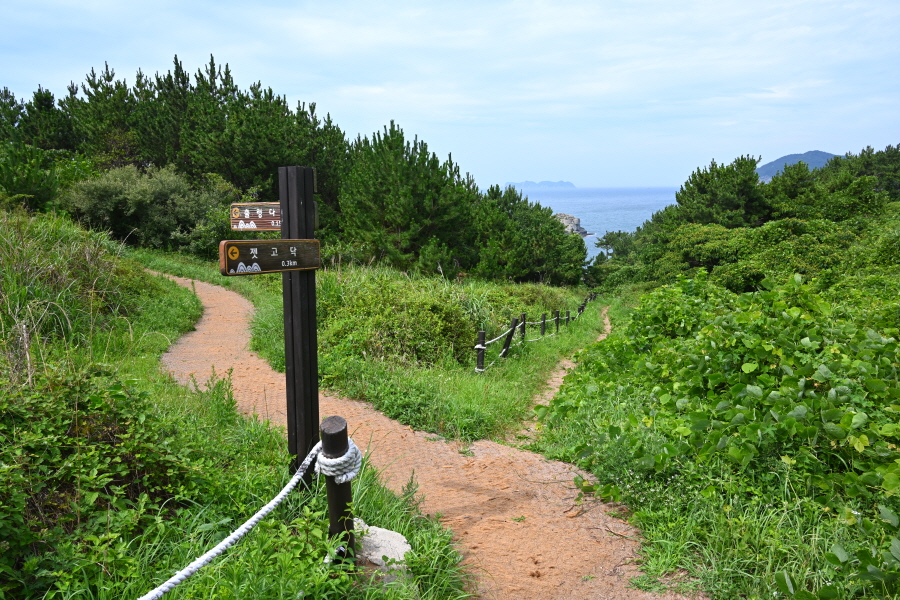 깎아지른 벼랑이 정말 멋진 섬입니다. 펠리컨 바위에서 되돌아 나와 이제 '고래강정(0.7㎞)·전망대'로 갑니다.