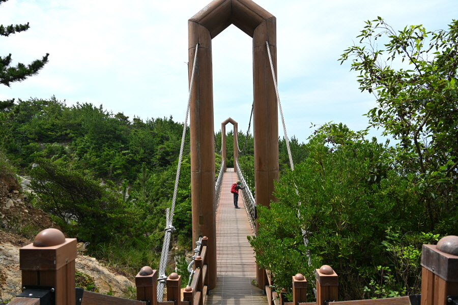 곧 나오는 갈림길에서 왼쪽 출렁다리로 갑니다. 출렁다리를 건너 펠리컨 머리 부분인 암반 전망대의 조망이 정말 좋습니다.