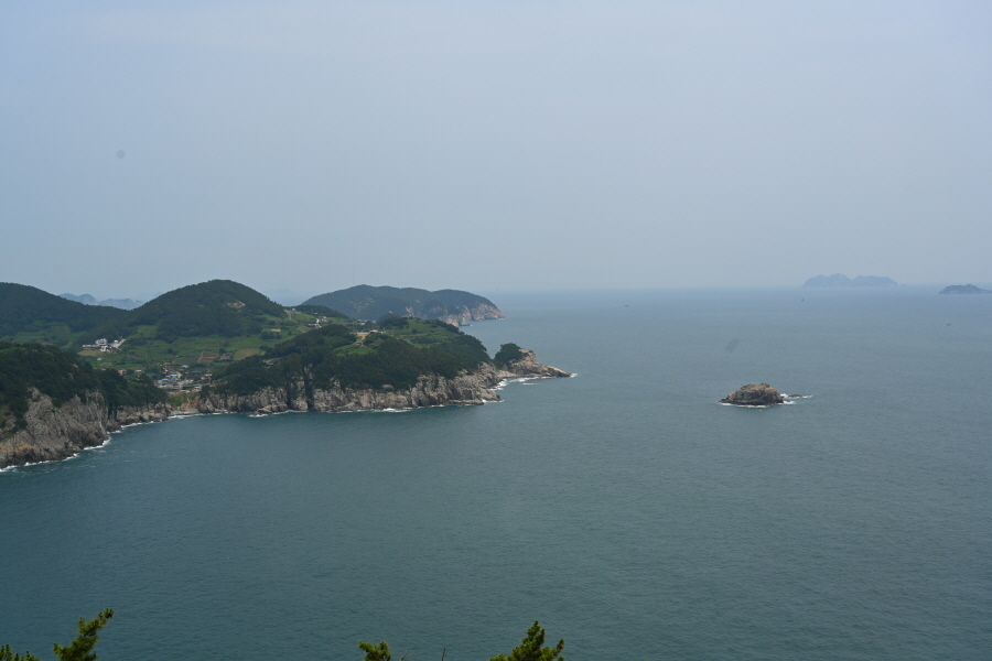 거북 바위인 광주여가 먹이인지 금방이라도 달려들어 꿀꺽할 모양새입니다. ㅎㅎ 그 뒤로 국도와 좌사리 제도 전경이 펼쳐집니다.