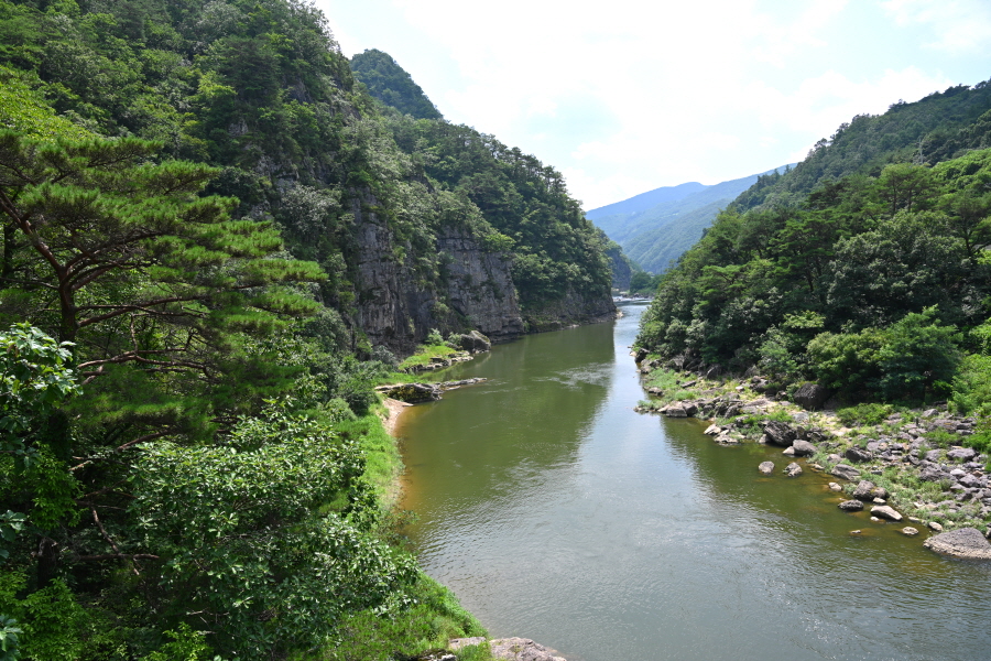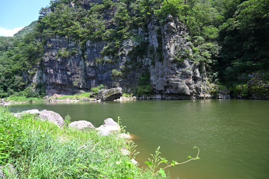 백용담은 청량산 바위 절벽을 휘감으며 예던길에서 폭이 가장 좁은 협곡입니다.