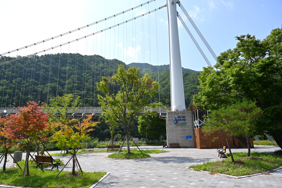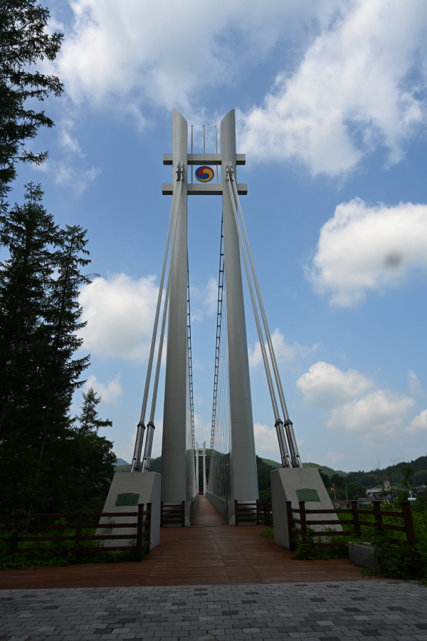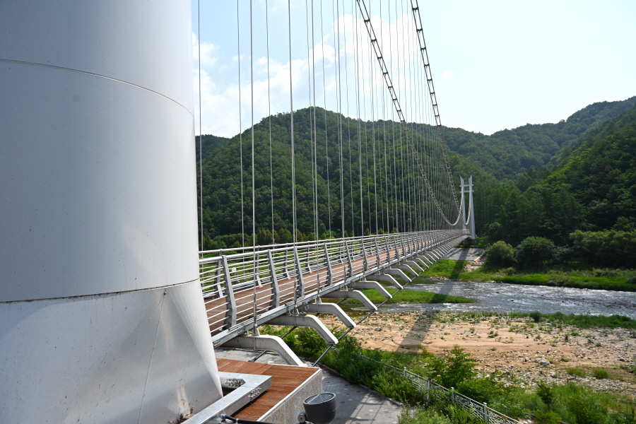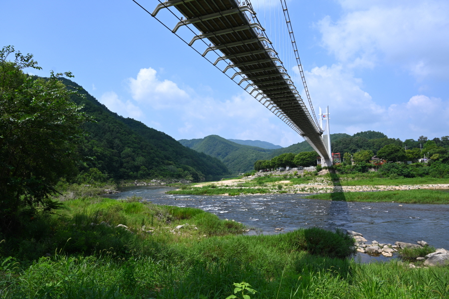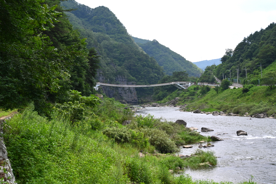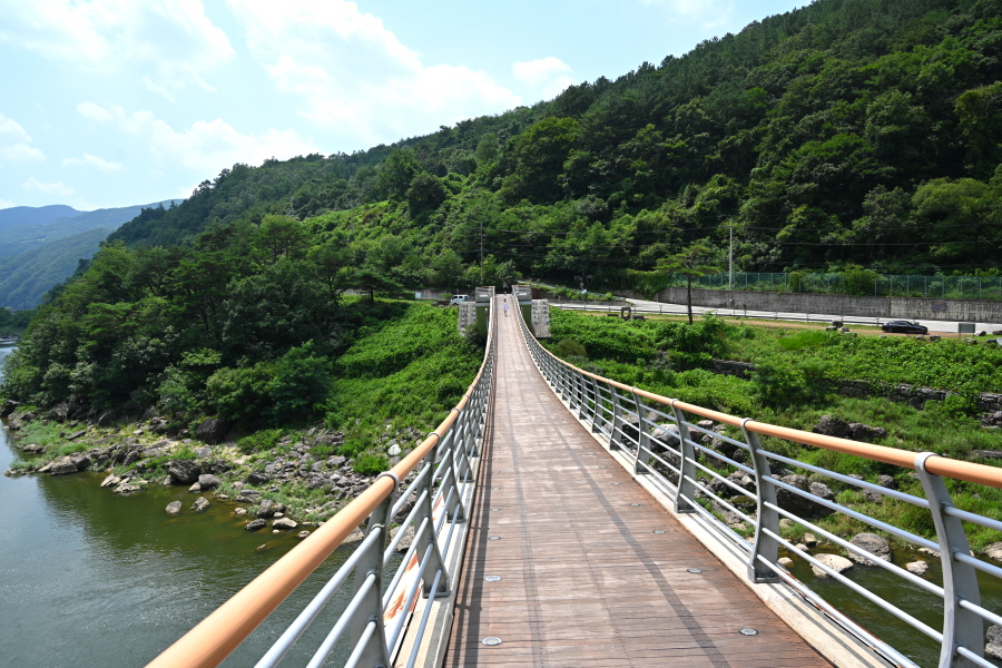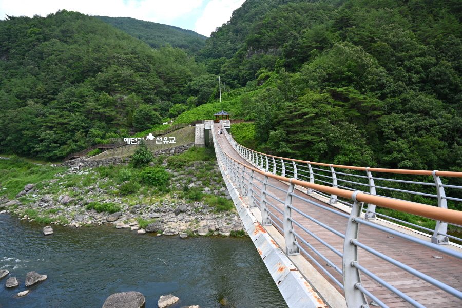 여울목의 바위 절벽을 도는 덱 길을 지나 명호교에서 약 40분이면 백용담 출렁다리에 도착합니다.