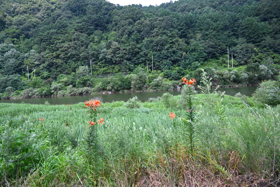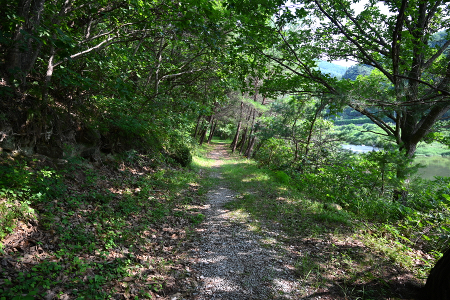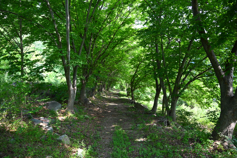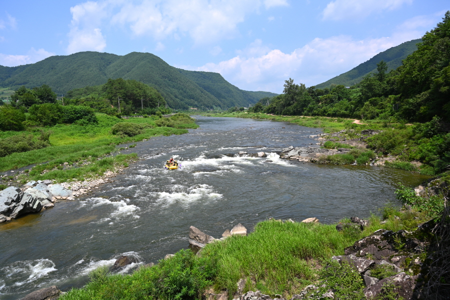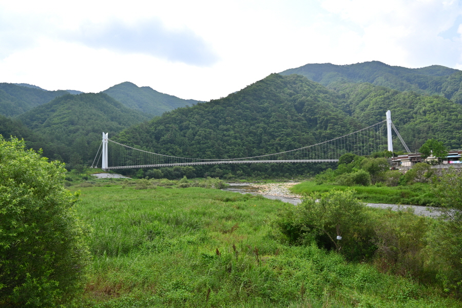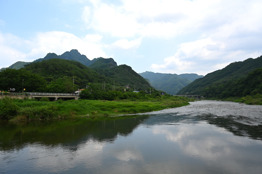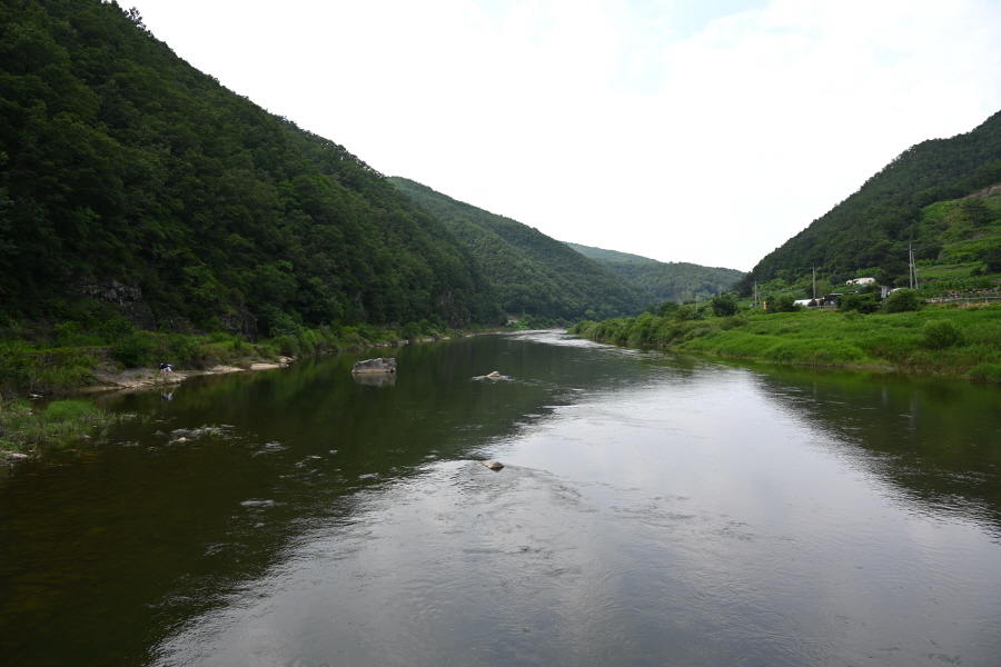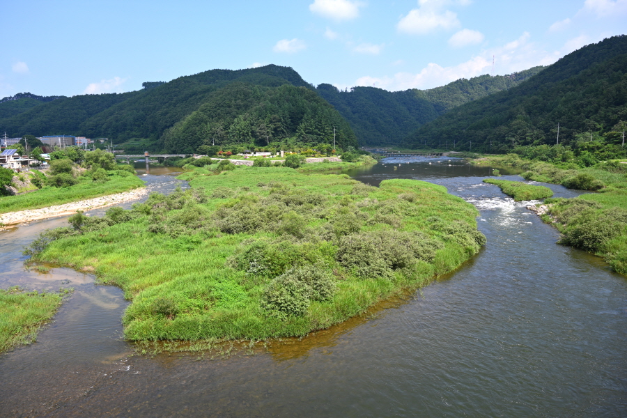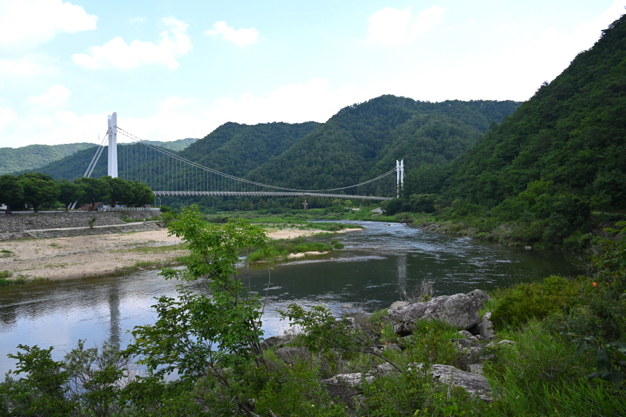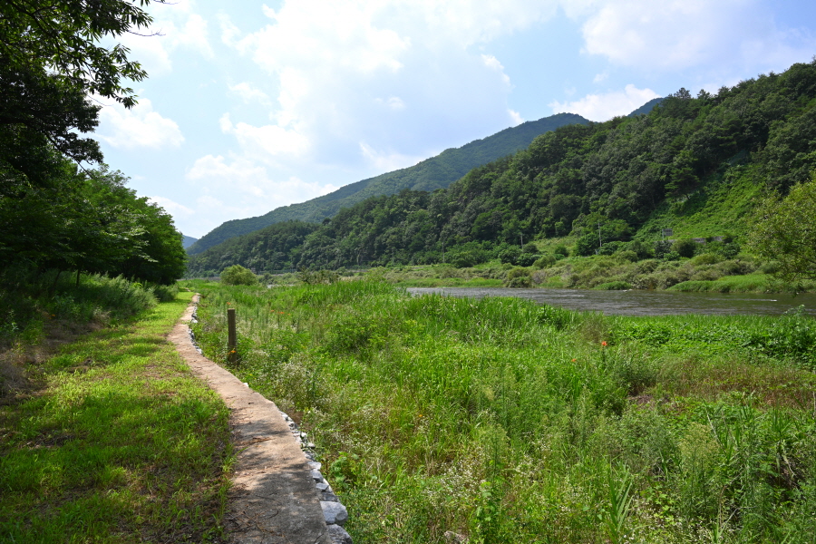 느티나무 숲을 지나 호젓한 강변 오솔길이 한동안 이어집니다. 홍수가 나면 강을 가득 메운 물이 넓은 들 같이 보여 ‘나분들’로 불린다는 광석나루에 놓인 청량교가 멀리 보입니다.