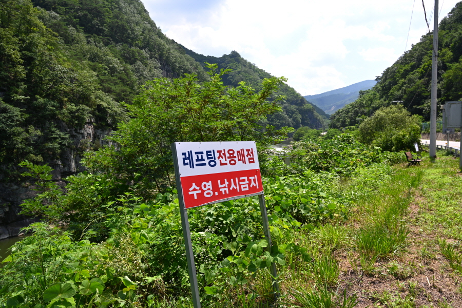 간이 화장실을 지나 래프팅 전용 매점 안내판에서 왼쪽으로 내려가 백용담을 보고 옵니다.
