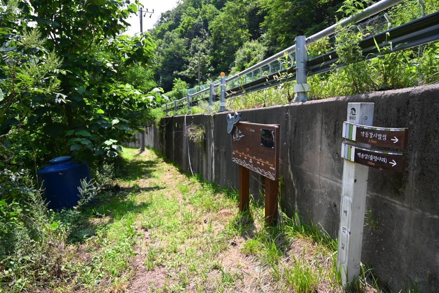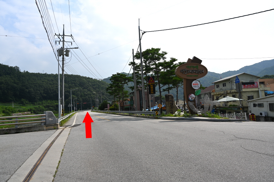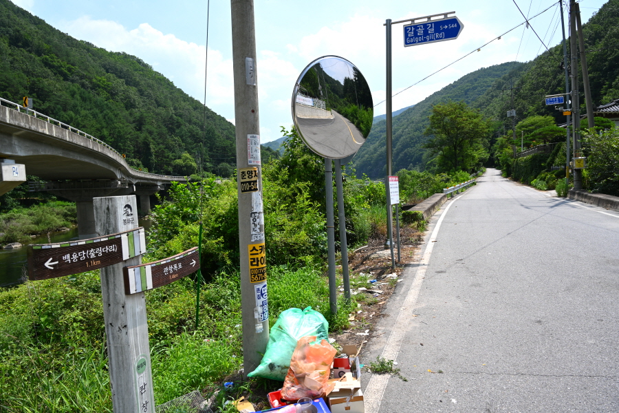 관창 2교 아래를 지나 도로를 따라 관창폭포(1.4㎞)로 직진합니다.