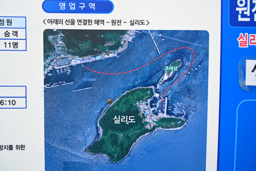실리도는 구산면 심리 원전항에서 출발합니다.