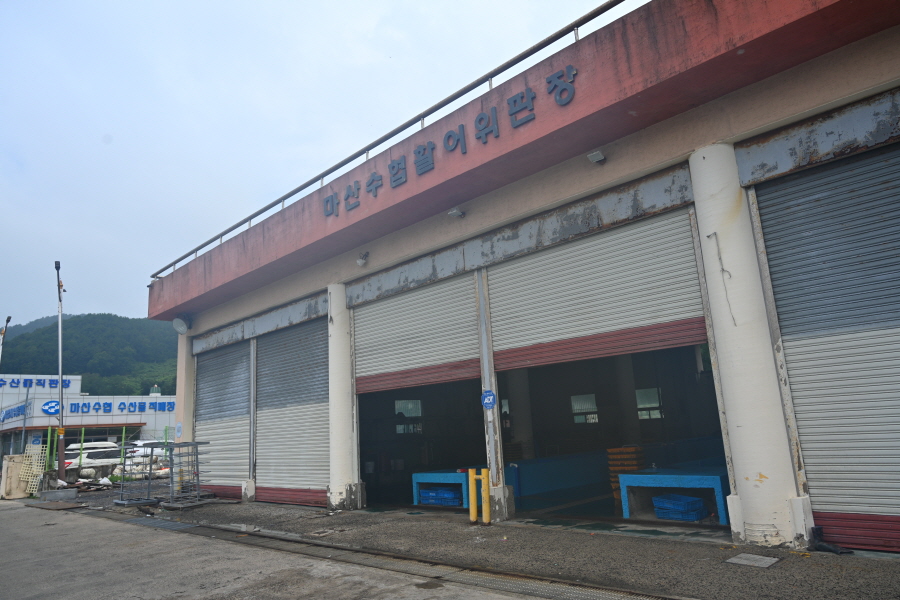 그 왼쪽이 마산수협활어위판장이며 실리도 도선 선착장은 마산수협 활어위판장 앞에 있습니다.