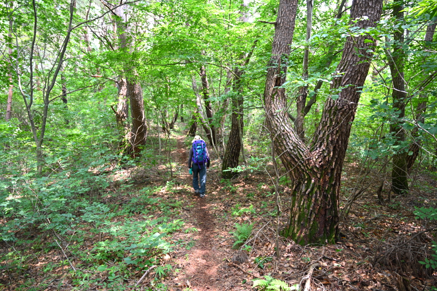 농막이 들어선 사유지 앞에서 오른쪽으로 돌면 본격적인 산행이 시작됩니다. 배내골 주민이 양산·석계장을 보러 넘어 다닌 옛길로 양산시에서 ‘장터길’로 조성했습니다.