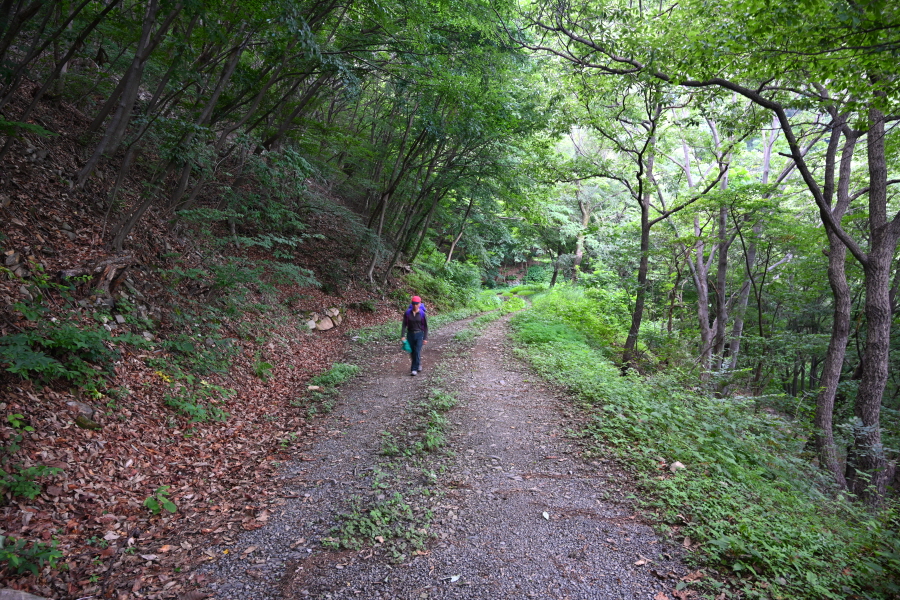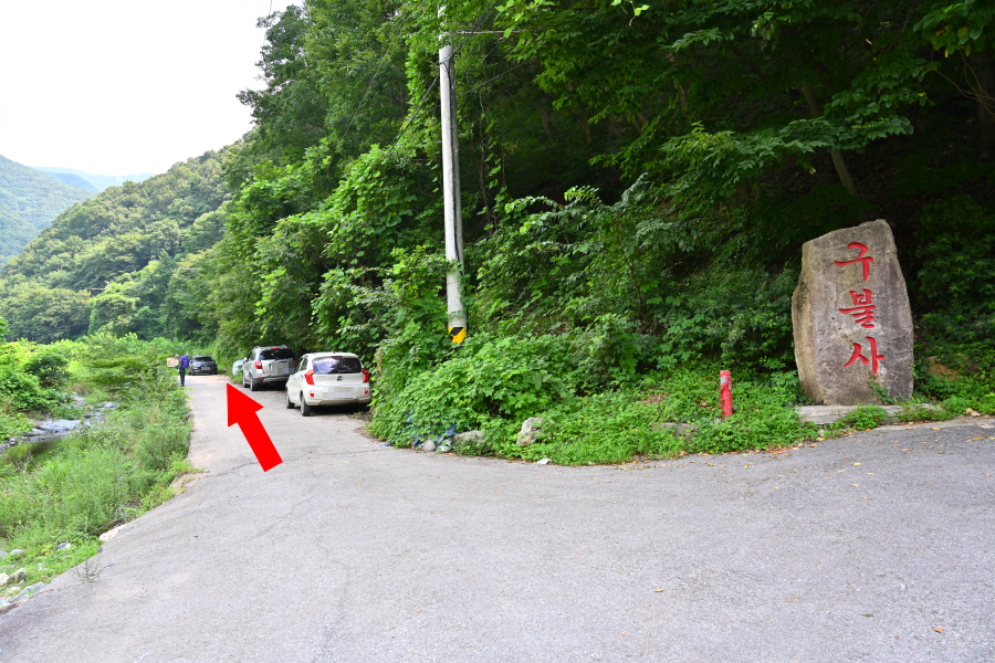 늦더위가 기승을 부려 아직은 암반을 타고 흐르는 개울의 물소리가 반갑습니다. 구불사 주차장에 도착해 취재팀은 임도를 직진합니다. 왼쪽으로 개울을 건너면 염수봉 가는 길인데 현재 풍력단지 공사로 폐쇄됐습니다.