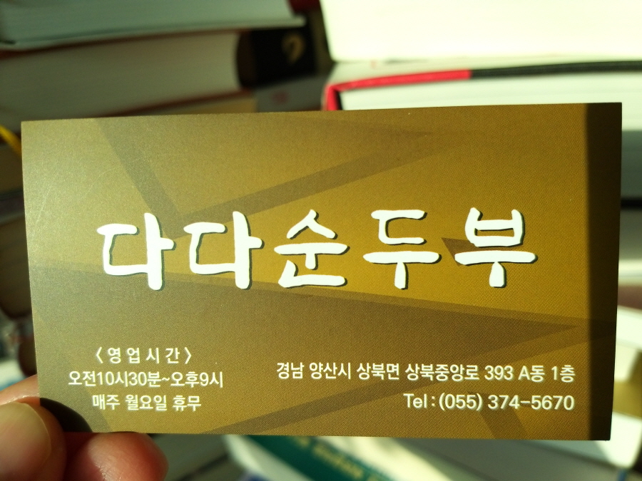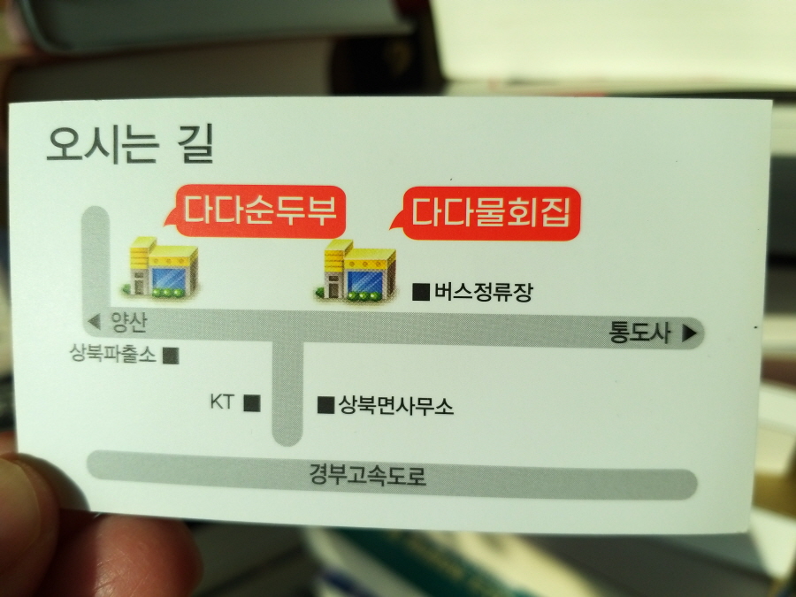 다다 순두부 주소:경남 양산시 상북면 상북중앙로 393 A동1층