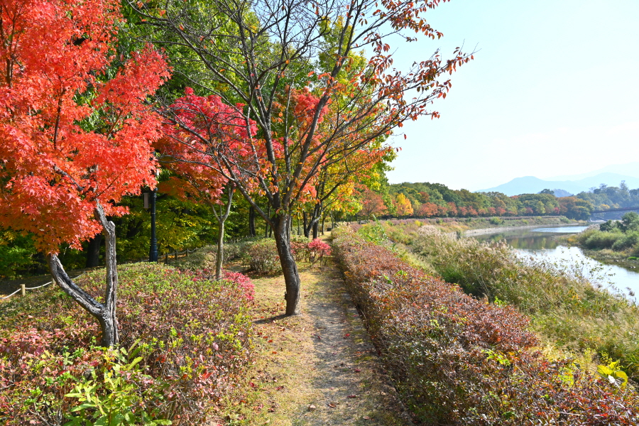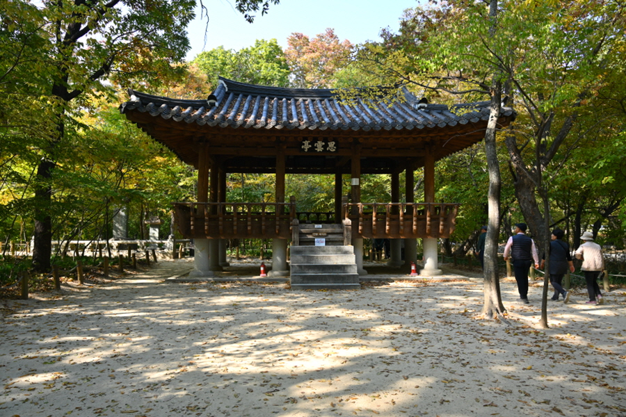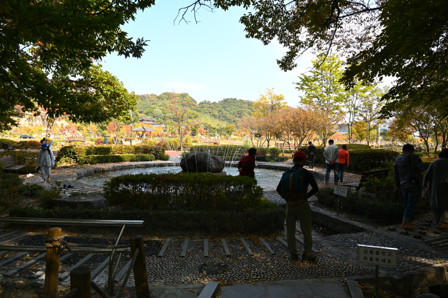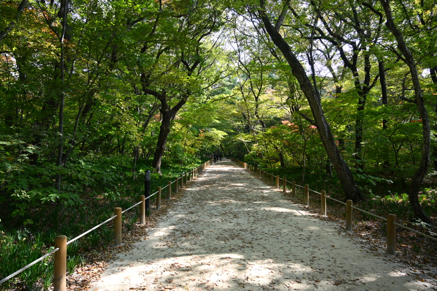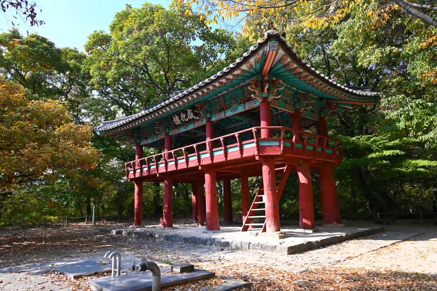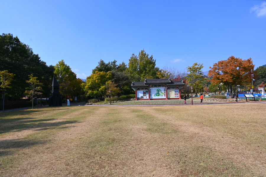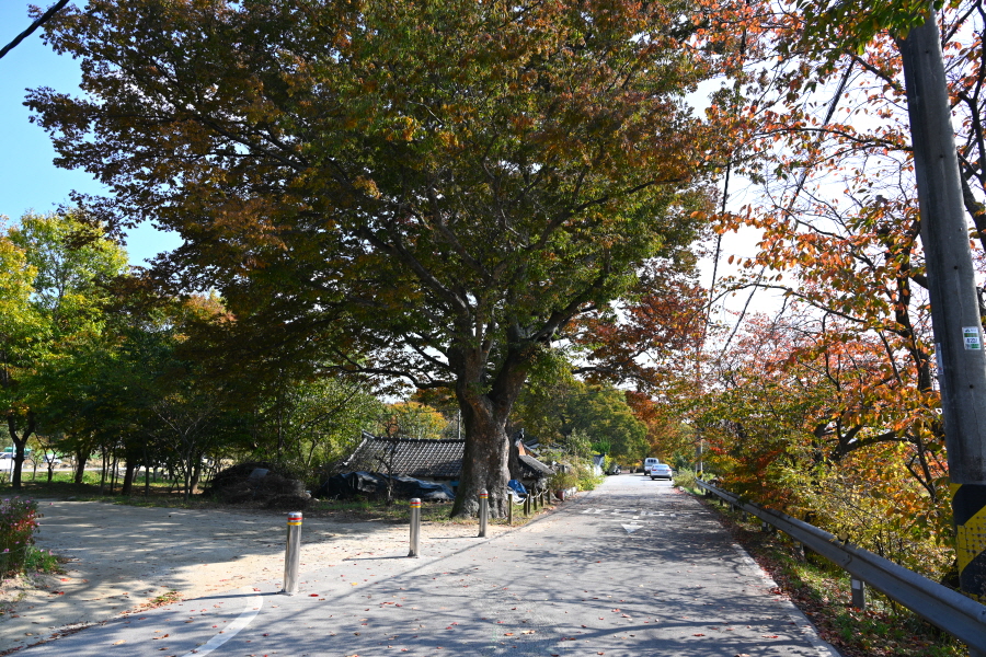 상림은 사계절 아름다움을 보여주는 숲입니다. 이맘때는 붉고 노란 단풍이 치장하는 아름드리 고목사이를 걷는 가운데 '맨발 길'이 좋습니다.