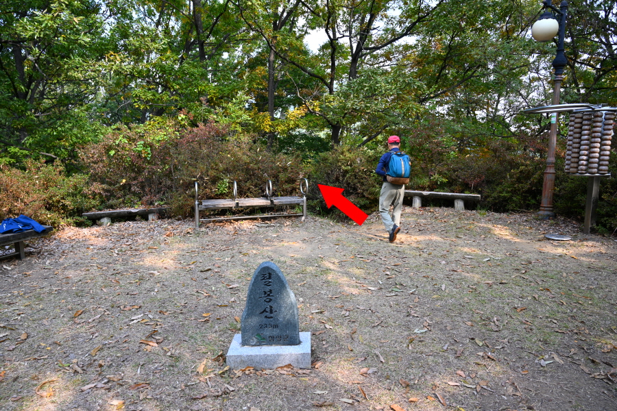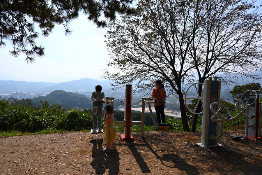 석축을 돌아 배수지 입구 앞 갈림길에서 왼쪽 시멘트 계단을 올라가면 문필봉으로도 불리는 필봉산 정상에 도착합니다. 전형적인 동네 뒷산의 모습이지만 운동기구와 가족 산책로가 조성돼 주민의 많은 사랑을 받습니다.