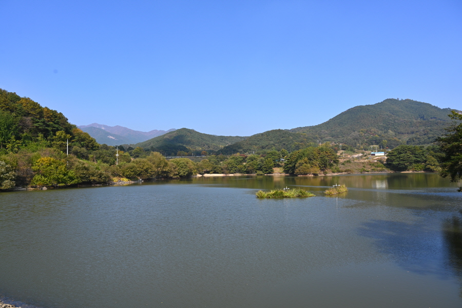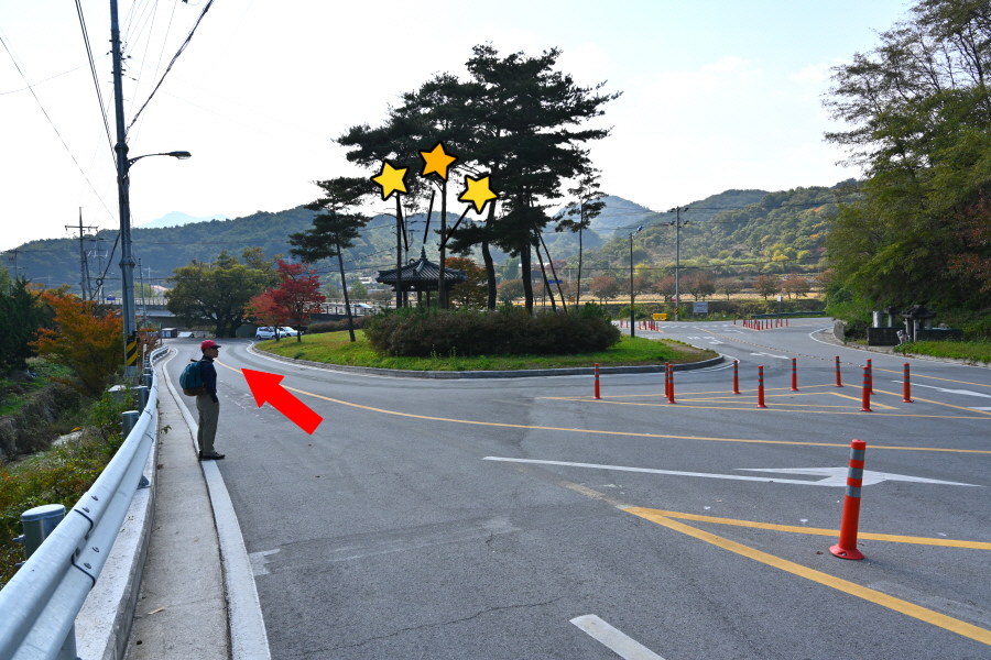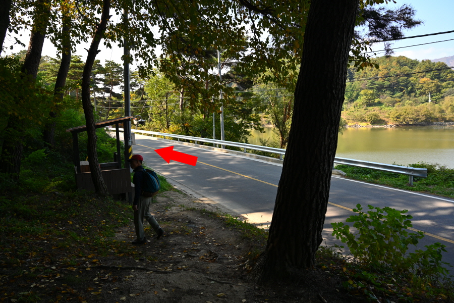 뇌계정 앞 삼거리에서 왼쪽이며, 정자를 지나 갈림길에서 오른쪽 둑길를 갑니다.