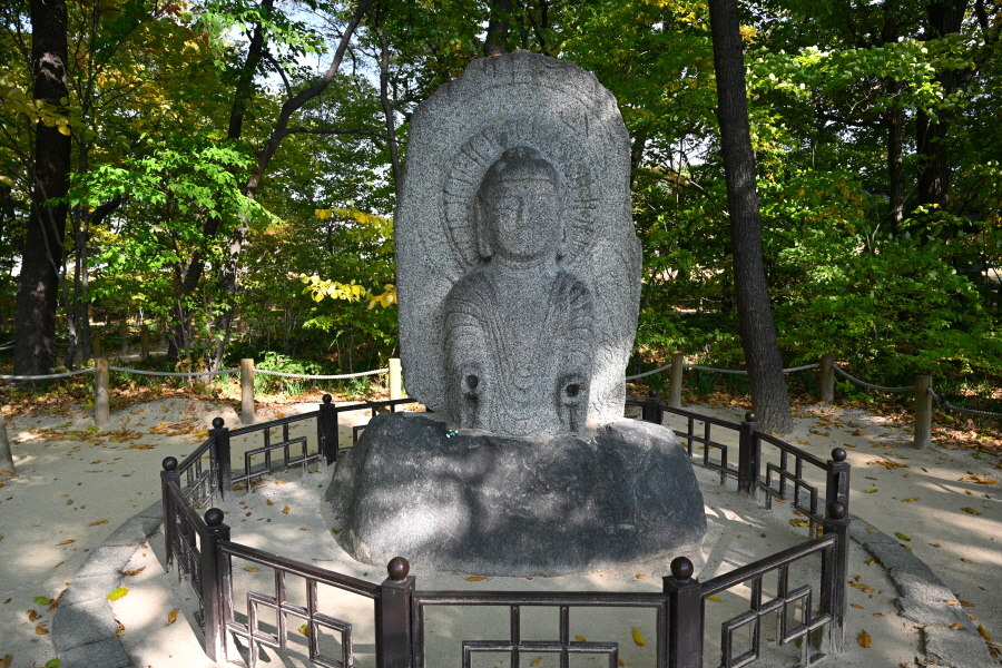 보통 돋을새김 양식인데 암벽에 홈을 깊게 파서 새긴 게 특징입니다. 다시 산책로에 복귀합니다.