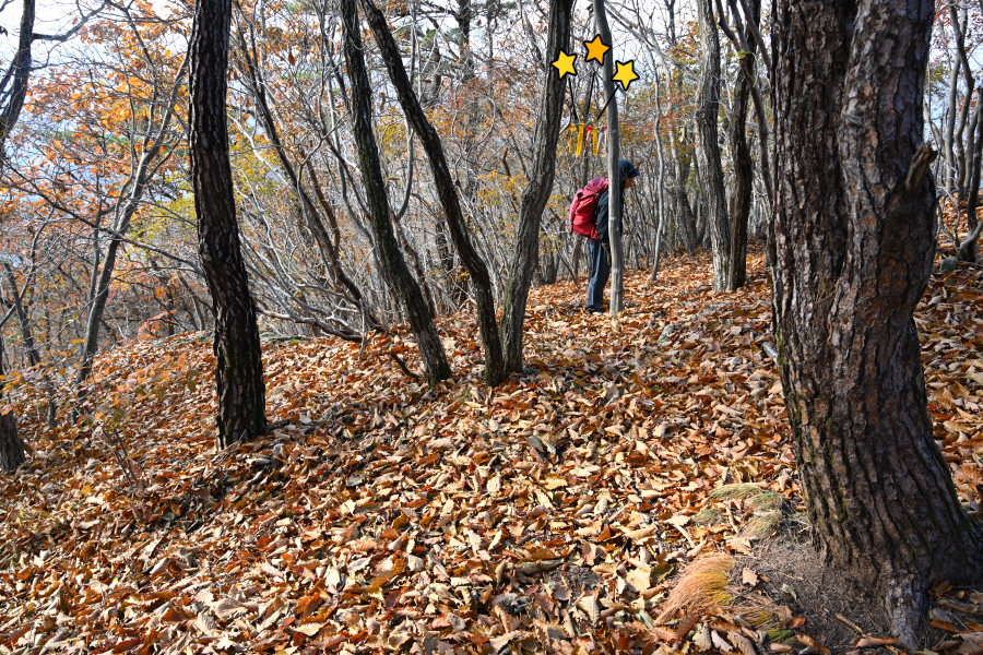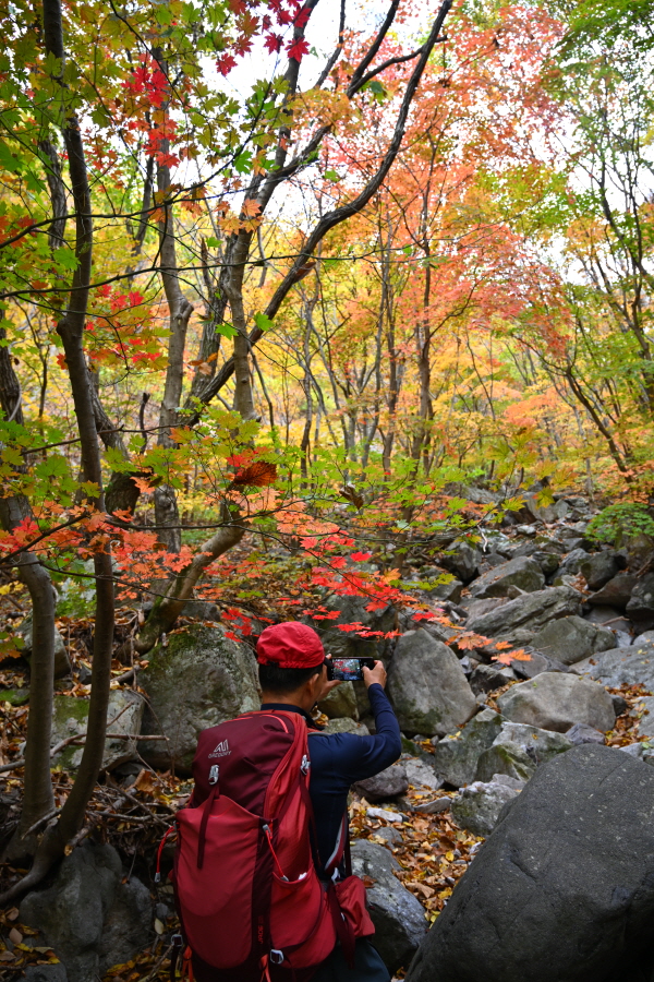 이번에 필자는 한여름에 산꾼의 ‘알탕’ 산행지로 꼽는 가인계곡을 연결하는 북암산(806m)~문바위(884m)를 끝물 단풍 산행지로 산행했습니다.