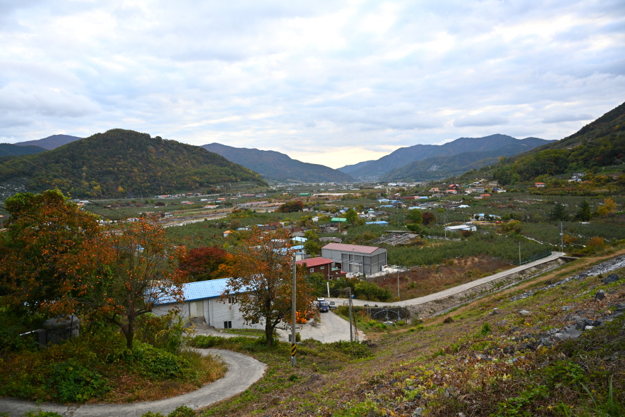 이곳을 오르면 바위 전망대가 나옵니다. 올라가기가 약간 까다롭지만 전망대에 올라서면 동쪽에는 운문산과 천황산이 구름을 이고 섰습니다. 발아래는 얼음골 사과밭 사이로 ‘S라인’을 그리며 24번 국도와 동창천(산내천)이 흘러갑니다.