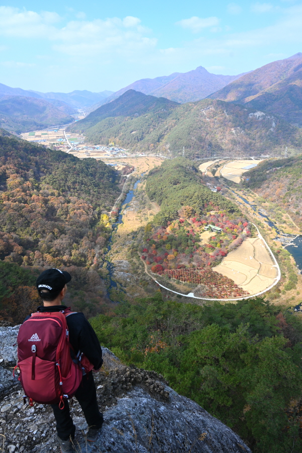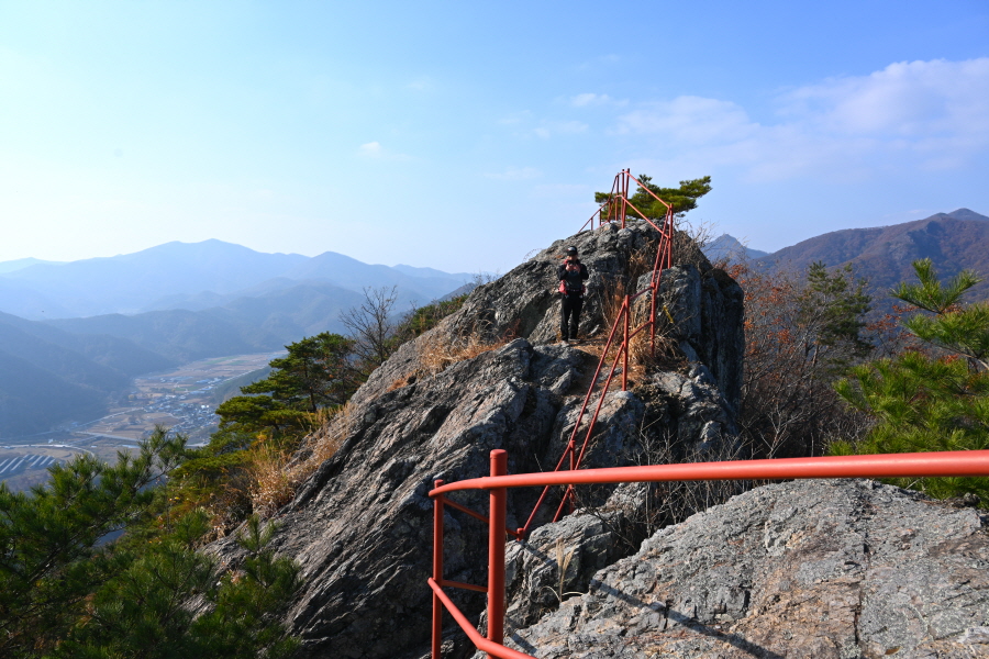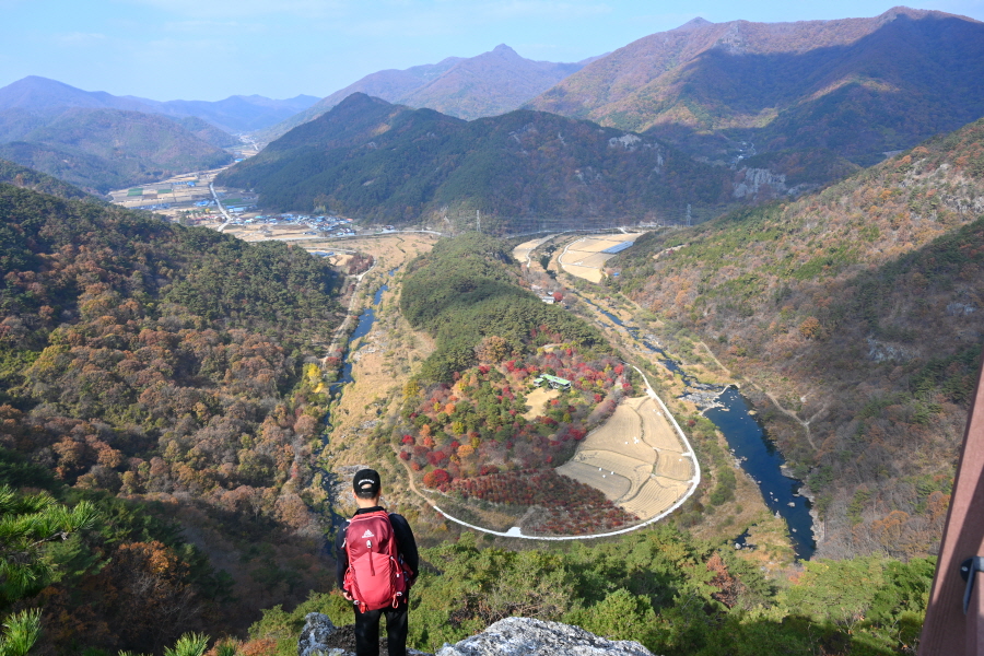 뾰쪽한 칼끝 같아 ‘칼바위’라 불립니다. 한반도 지형을 조망하는 전망대로 치천에 떨어지는 천길 절벽 끝에 들어서 일급 조망이 열립니다.