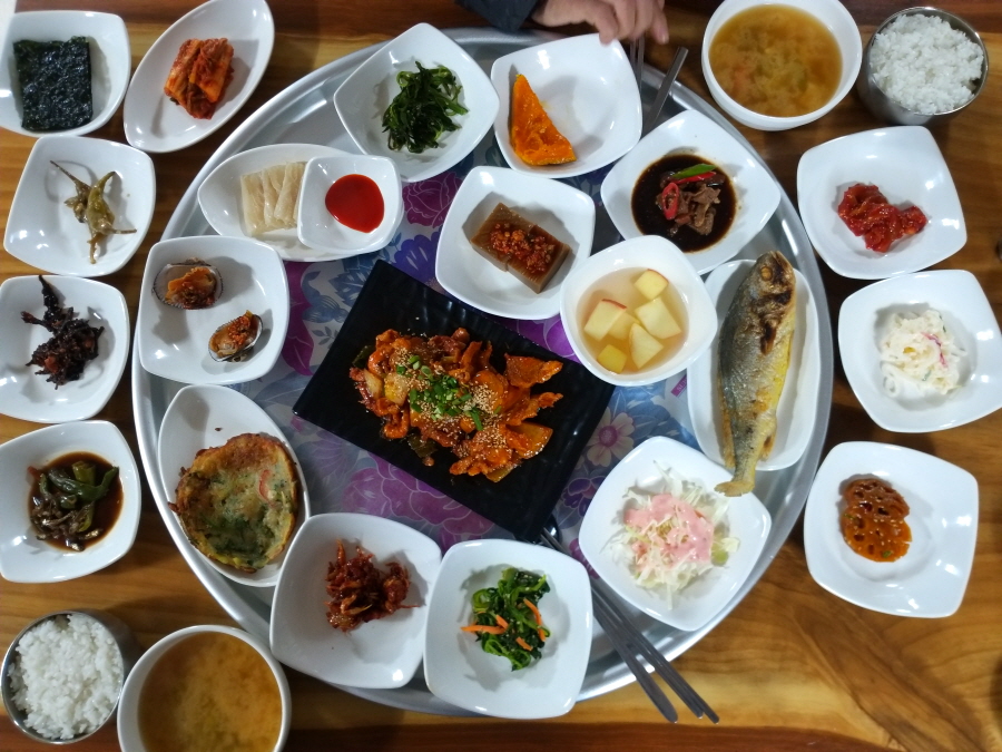 산행 들머리 인근의 구림에서 올 7월에 순창읍내로 이전한 함양식당(063-652-8677) 입니다. 수제고추장불고기정식(사진)과 백반정식인데, 백반정식에는 수제고추장 불고기만 없을 뿐 똑같이 21가지 밑반찬이 한정식 수준으로 나옵니다. 어머니 손 맛을 그대로 이어받은 딸이 운영합니다. 수제고추장불고기정식 1인 1만4000원, 백반정식 1인 9000원, 2인 이상 주문.