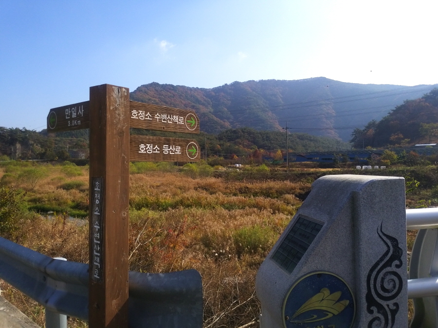 이번 산행은 금평교를 건너 호정소등산로 안내도가 있는 주차장에서 출발합니다. 금평교 입구의 이정표와 주차장 안내도에는 무직산이 아니라 호정소(湖淨沼) 등산로라 표기돼 있어 참고합니다.