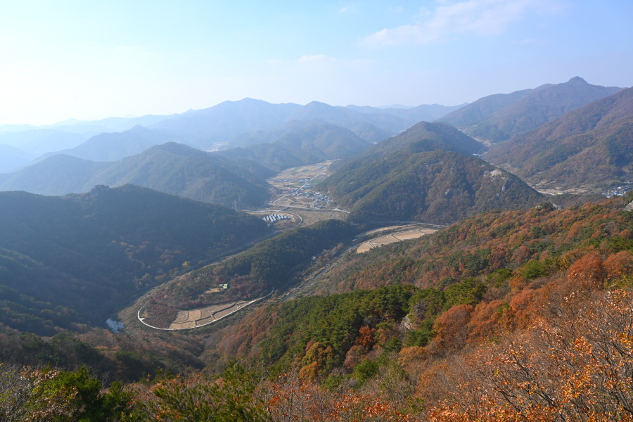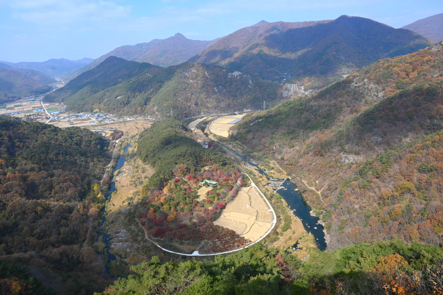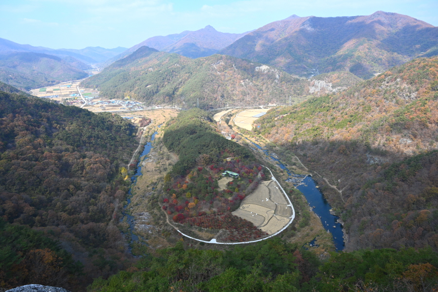 필자는 많은 볼거리를 보여주는 한반도 지형 전망대를 찾아가는 산행을 여러 번 했습니다. 이번에 다시 전북 순창군 구림면에 치천(구림천)이 물돌이 하며 한반도 지형을 만들어 요즘 떠오르는 산행지가 된 무직산(珷織山·572m)을 찾았습니다.