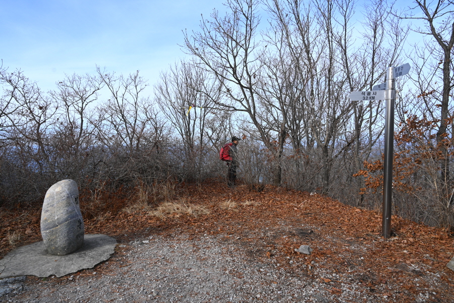 청도군·청도산악회가 아담한 정상석을 세워 놓았습니다. 주위 조망이 열리지 않아 왼쪽 억산(1.6㎞) 방향으로 내려갑니다. 오른쪽은 딱밭재를 거쳐가는 운문산(2.5㎞) 방향,