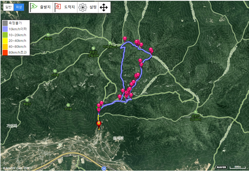 범봉이 억산보다 8m 더 높아 국토지리정보원에서 발행하는 지형도에는 범봉을 억산으로 표기하고 있으니 참고합니다.