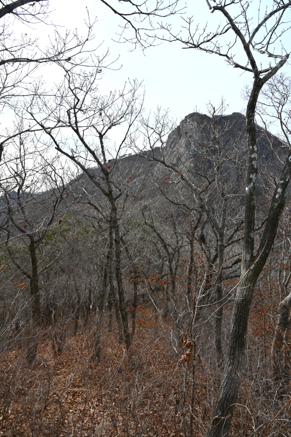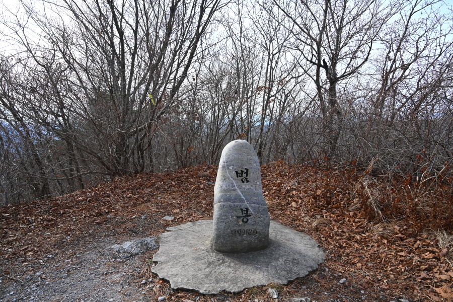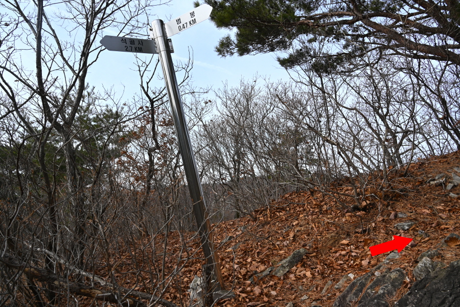 봉분이 남아 있지 않은 묵묘에서 된비알을 올라가면 나오는 이정표에서 범봉(0.47㎞)은 오른쪽으로 꺾습니다. 묵묘에서 20분이면 범봉에 올라섭니다.