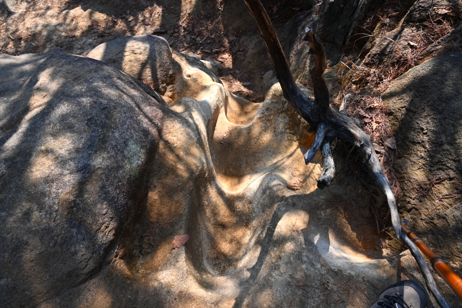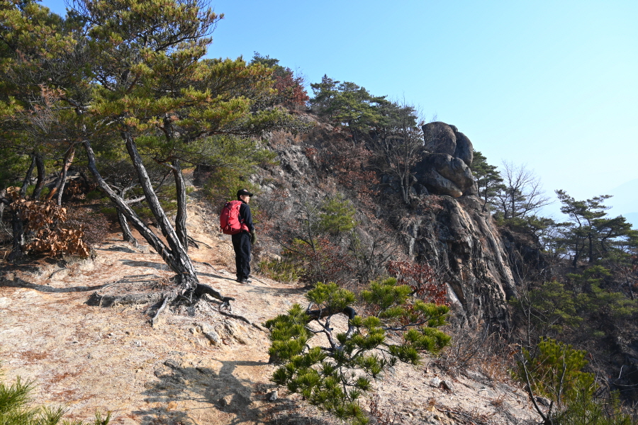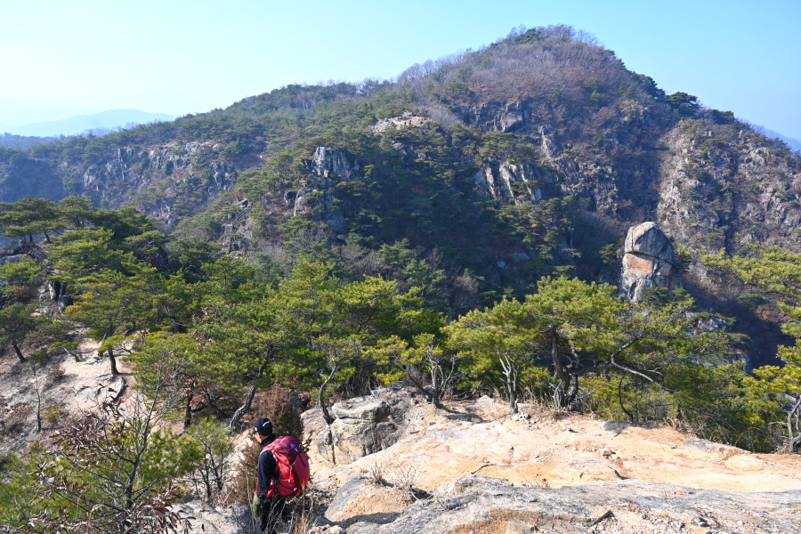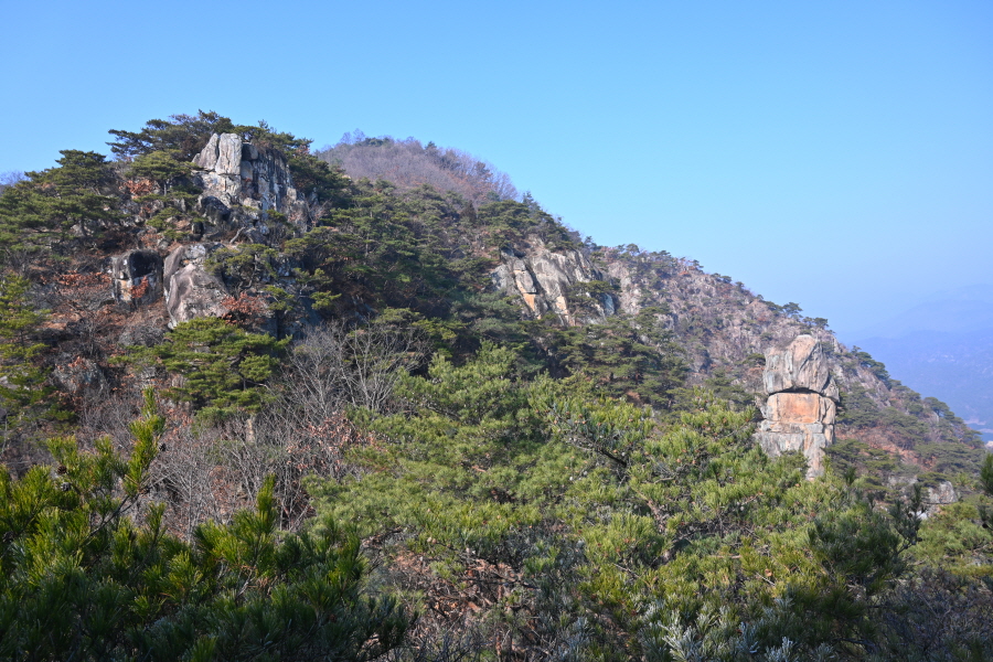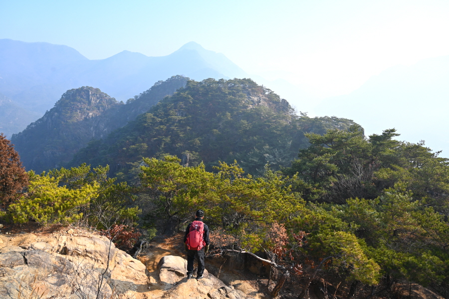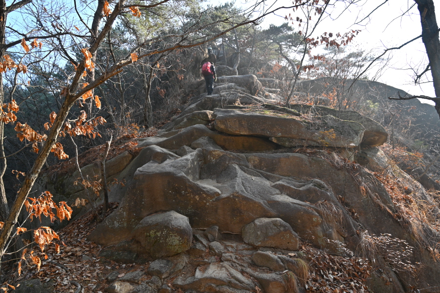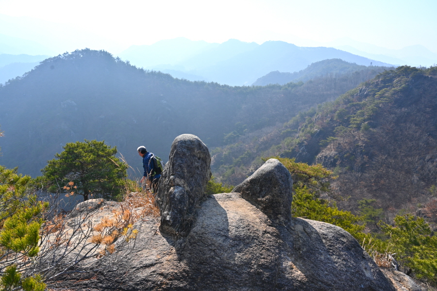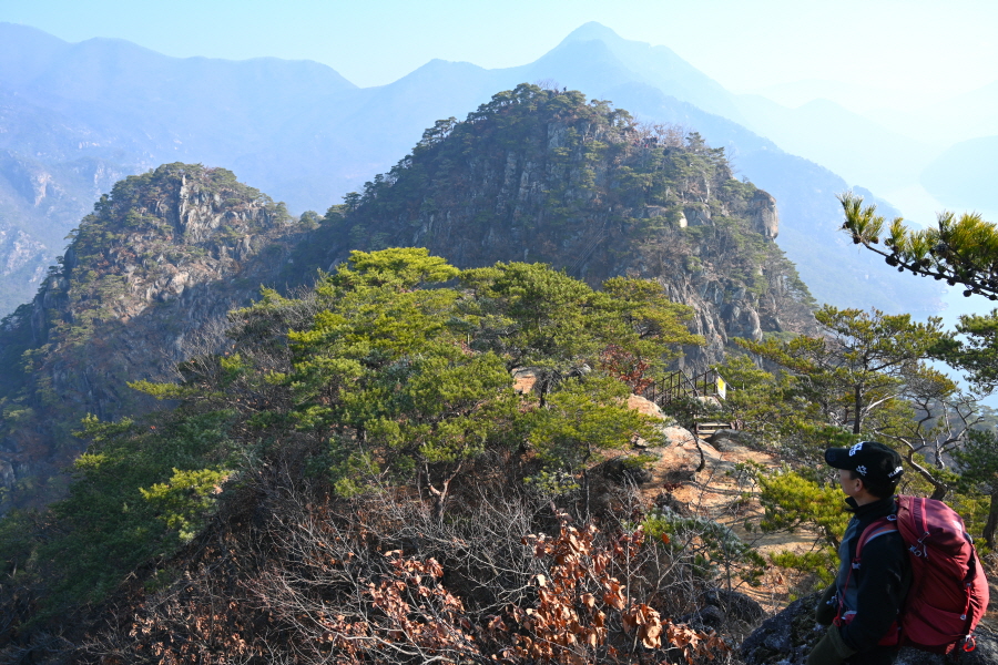 철계단을 내려서면 안부, 다시 바윗길을 올라갑니다. 쭈뼛쭈뼛한 바위가 늘어선 주변 경관은 발걸음을 자꾸만 붙잡습니다.