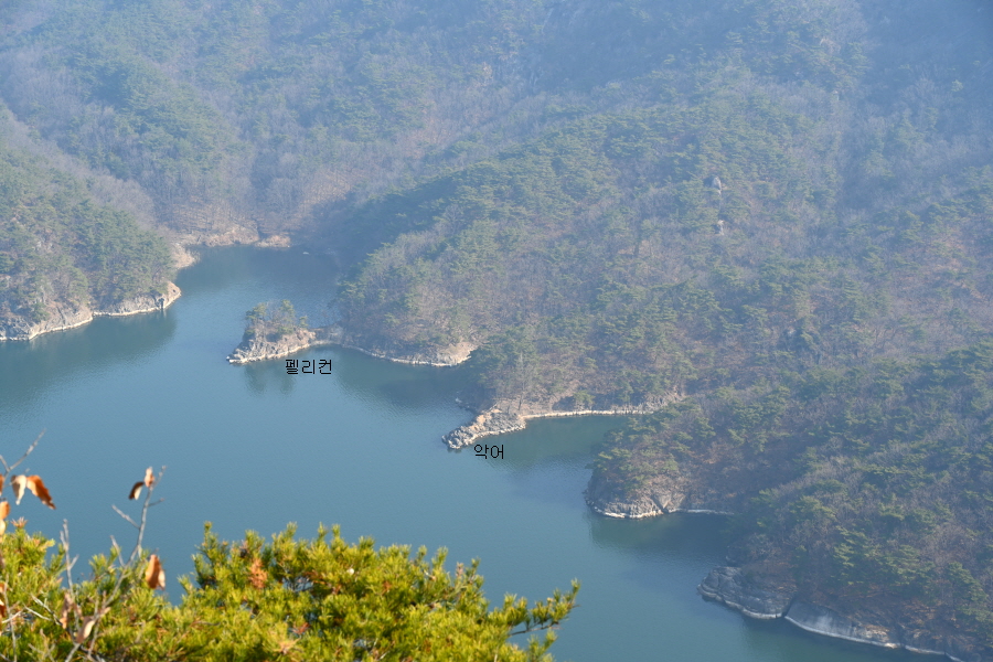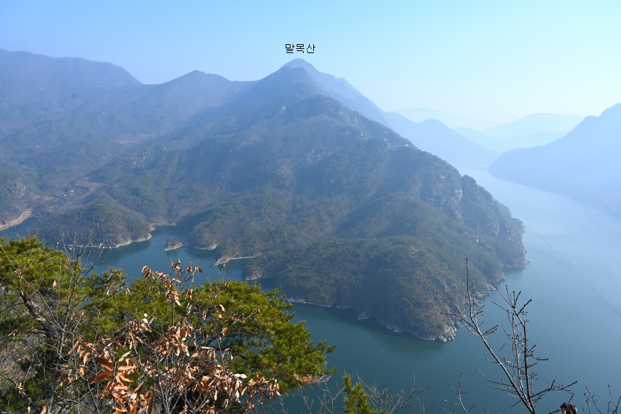 구담봉 정상의 조망과 별반 다르지 않으나 수반에 놓은 수석을 보는 듯 충주호에 솟은 말목산과 구담봉이 한 폭의 진경산수화를 보는 듯 아름답습니다.