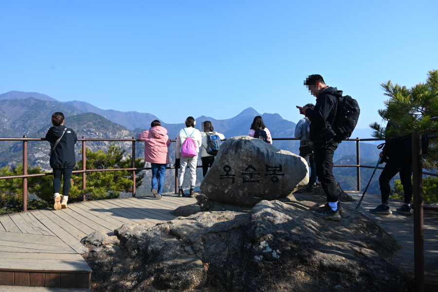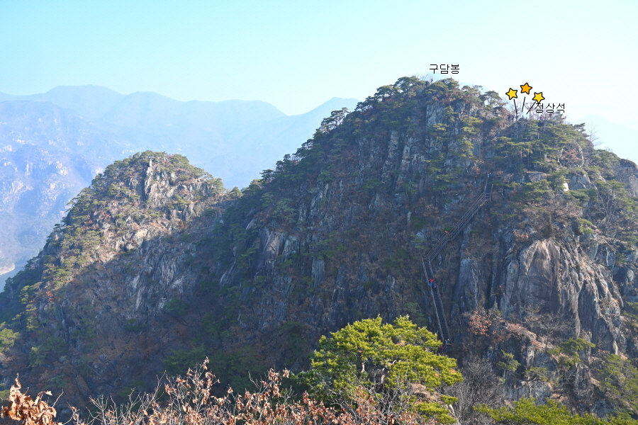 어느 봉우리를 먼저 가느냐는 상관 없습니다. 모두 오른쪽 구담봉으로 향하기 때문입니다. 그러다 보니 등산객과 관광객이 한꺼번에 몰려 복잡한데다 철계단에서는 정체가 됩니다.