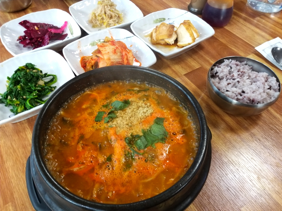맛집 한 곳을 소개합니다. 제천시 수산면 소재지에 있는 약채음식 전문점 '가람(043-651-2264)'입니다. 청정댐인 충주호(청풍호)에서 직접 잡은 민물고기로 푹 고아 내 놓는 어탕과 매운탕 전문점입니다. 어탕(사진)은 비린내가 나지 않으며 진한 국물은 산행으로 얼었던 몸을 녹이기에 충분합니다. 어탕 1인 8000원. 어칼국수 1인 9000원