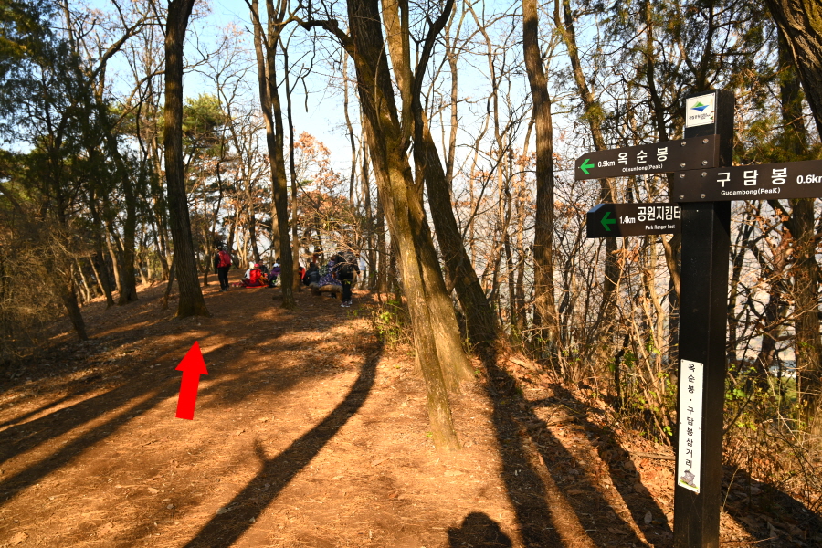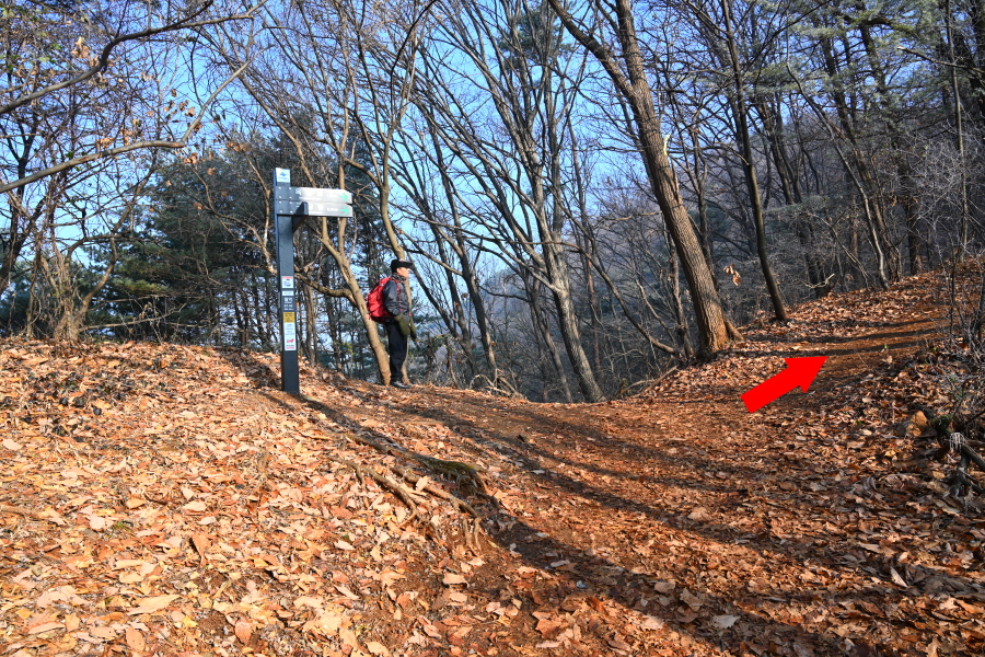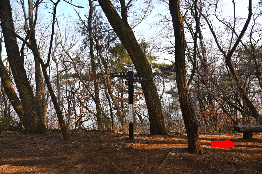 다시 왔던 길을 되돌아나가 30분이면 삼거리에 도착합니다. 이번에는 옥순봉(0.9㎞)으로 직진합니다.