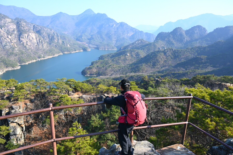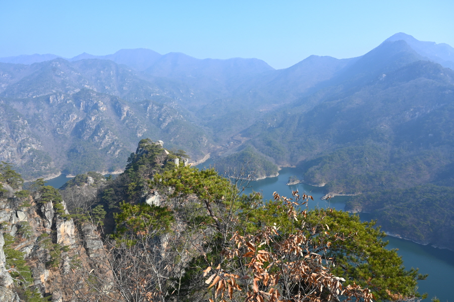 기암괴석이 빚은 산과 명경지수(明鏡止水)인 충주호의 물이 합해져 이를 수반위의 수석 같은 경관에 비유합니다. 필자는 퇴계 이황이 ‘중국의 소상팔경(瀟湘八景)이 이보다 더 나을 수 없다’며 극찬한 구담봉과 옥순봉을 연계하는 산행을 했습니다.