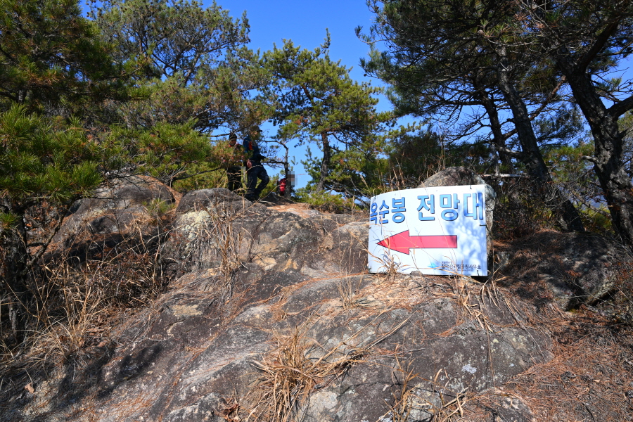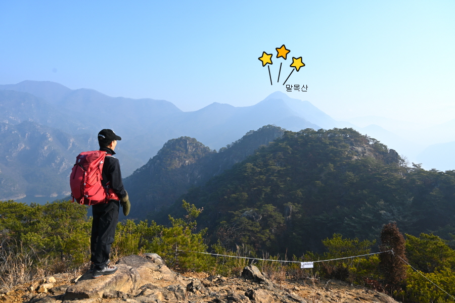 옥순봉 전망대 안내판을 지나 이정표 삼거리에서 35분이면 나무 덱이 깔린 옥순봉 정상에 섭니다.
