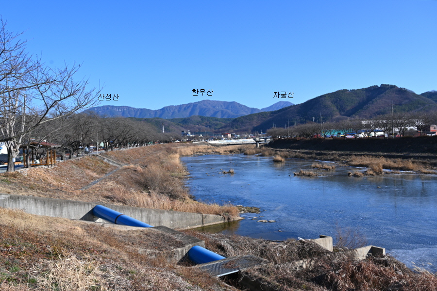 필자는 다리를 건너 오른쪽으로 돌아 양천 제방을 걷습니다.