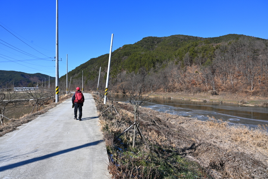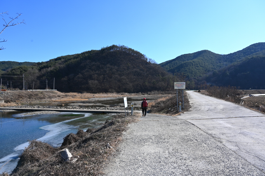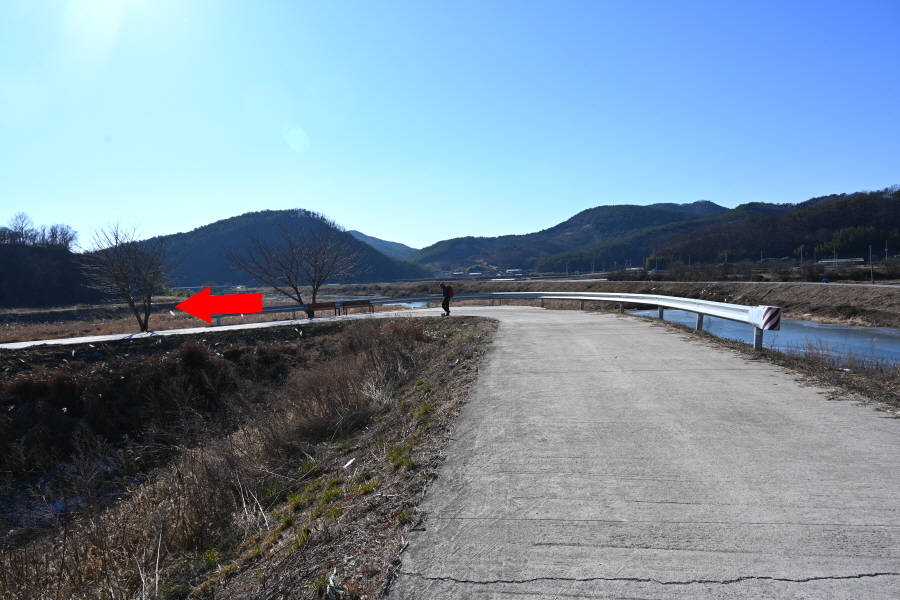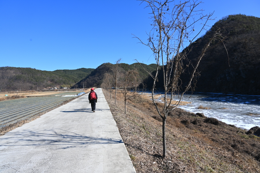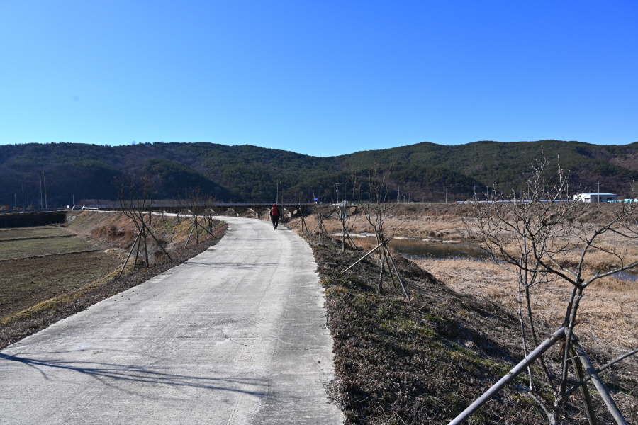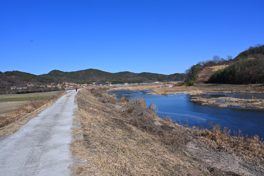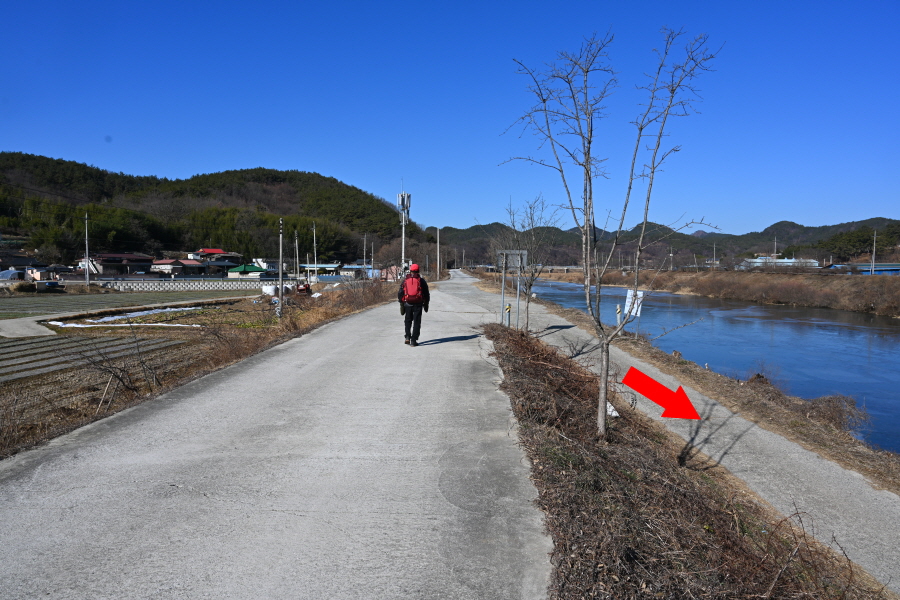배수장을 지나 수련원으로 사용중인 폐교 옆에서 왼쪽으로 꺾은 뒤 ‘ㄷ자’ 모양으로 돌아 강둑을 걷습니다.