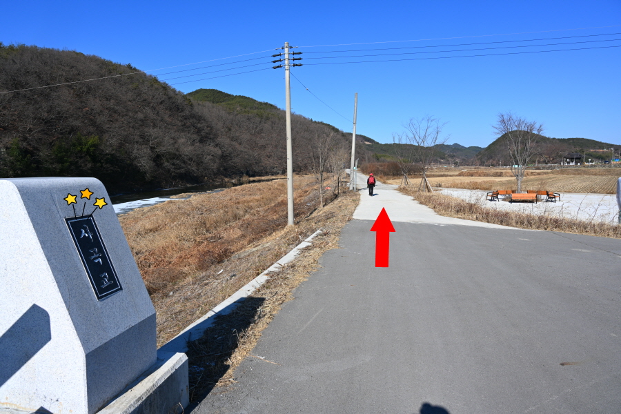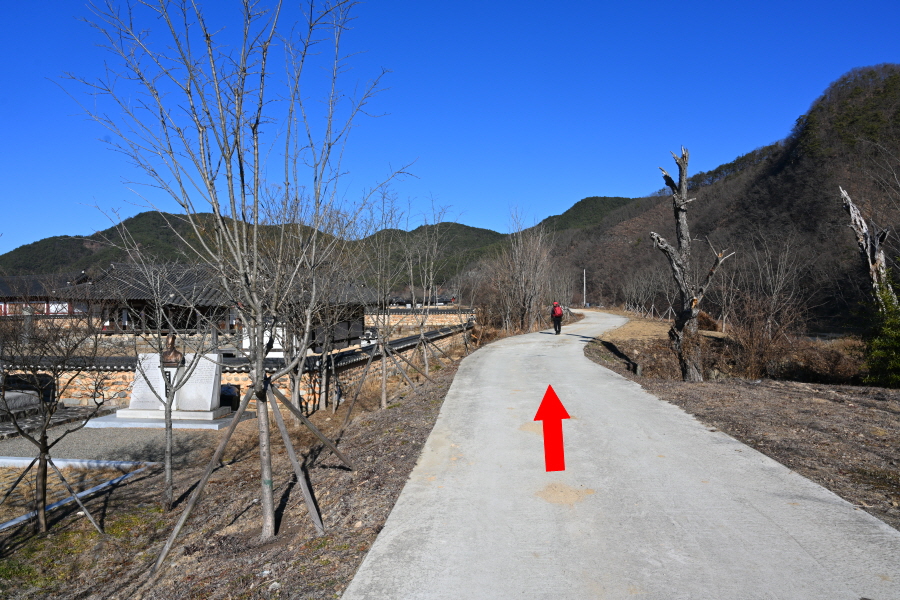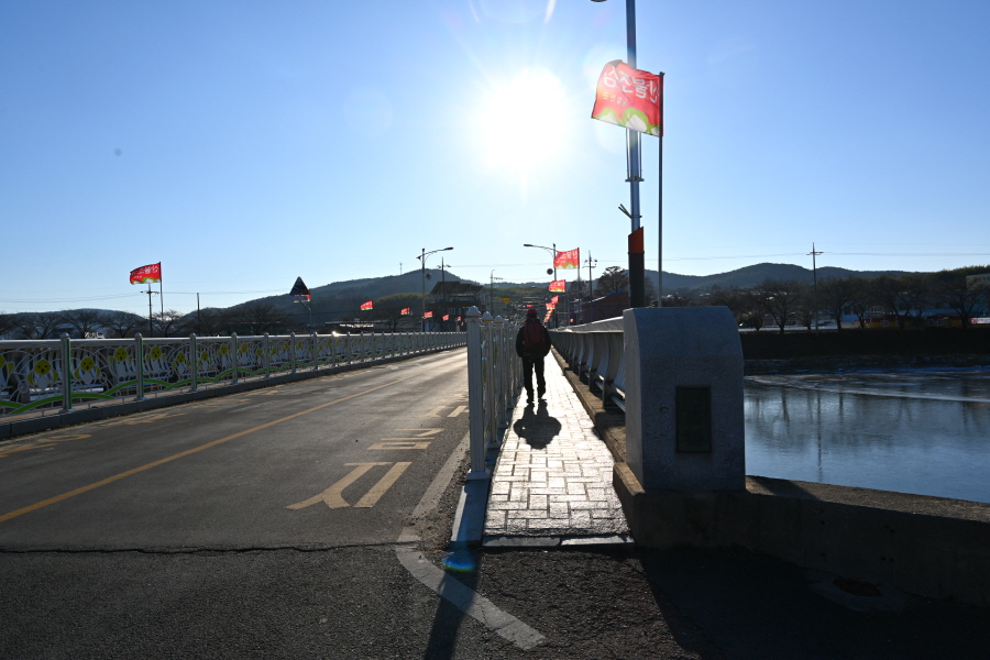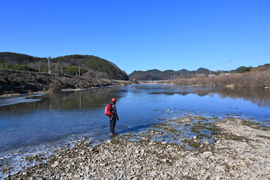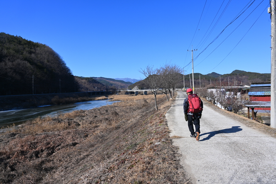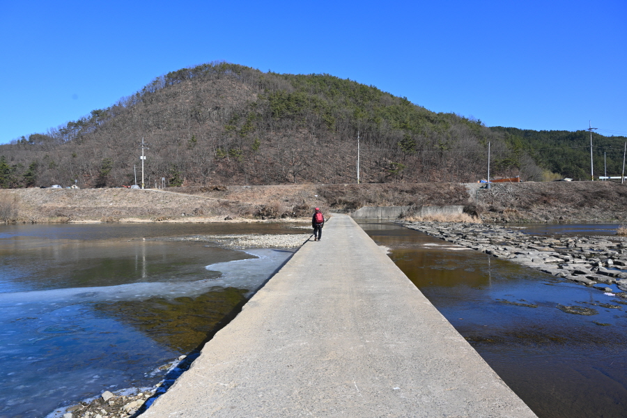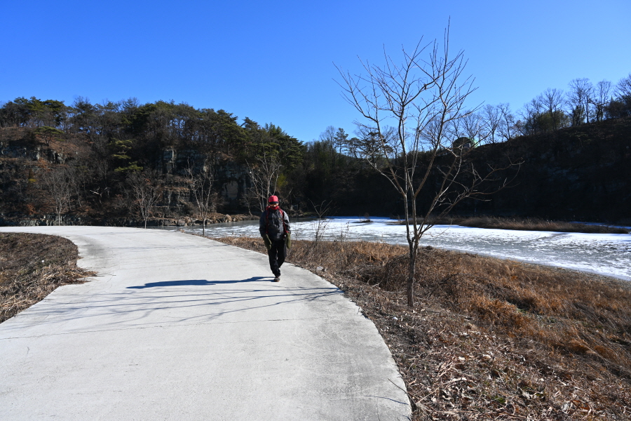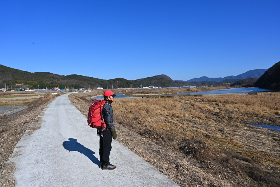 배수장을 지나 수련원으로 사용중인 폐교 옆에서 왼쪽으로 꺾은 뒤 ‘ㄷ자’ 모양으로 돌아 강둑을 걷습니다.