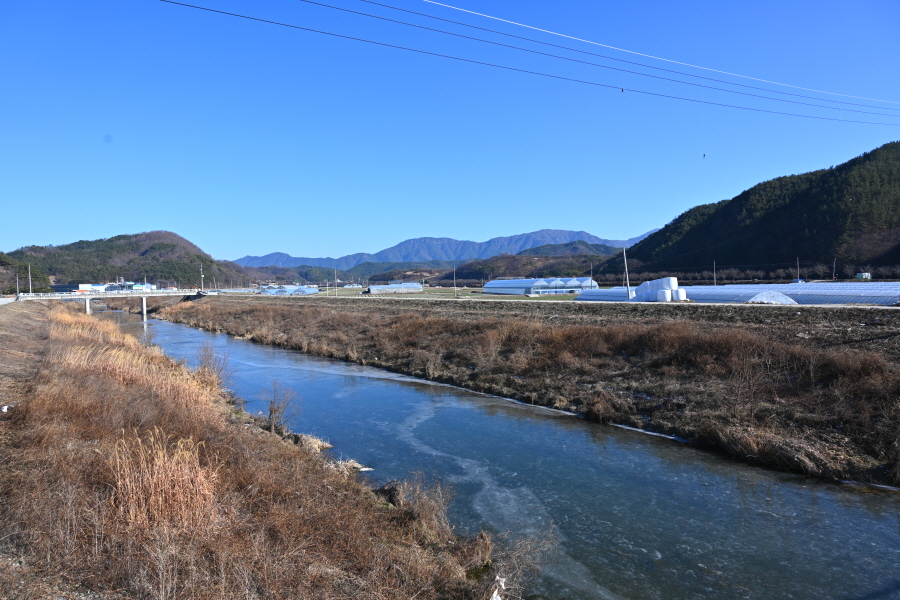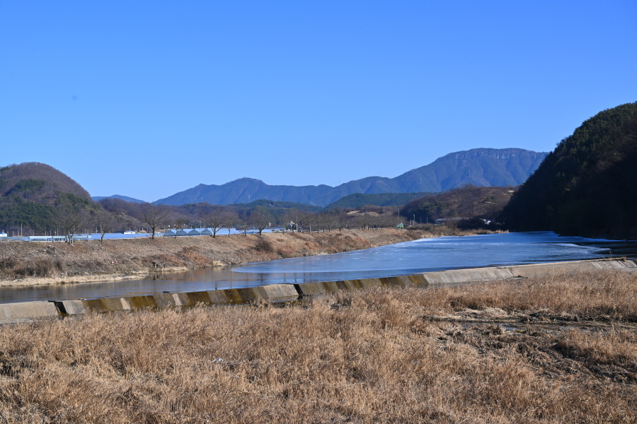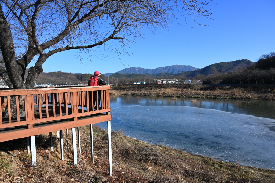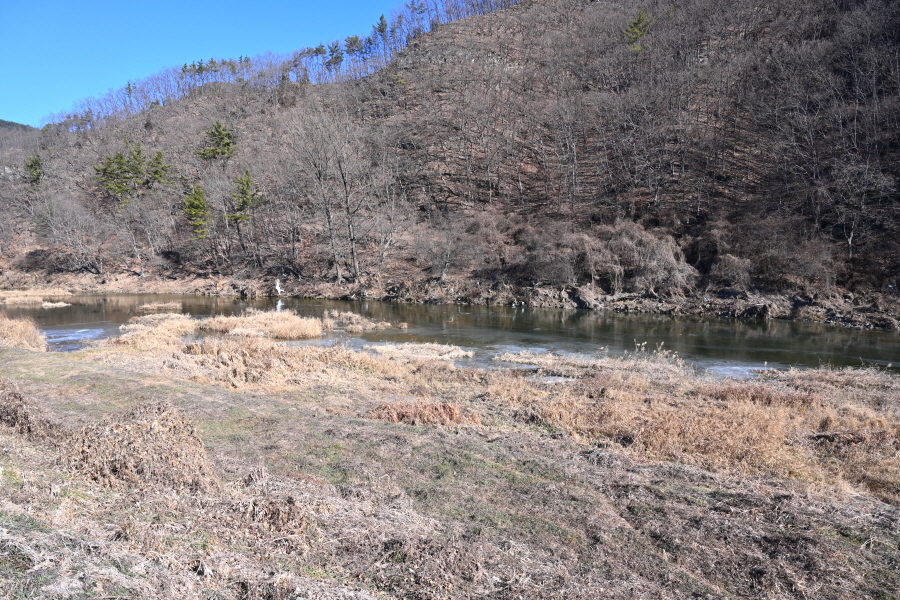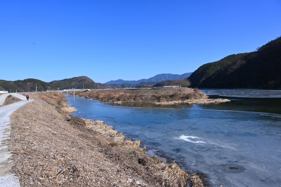 양천이 ‘뒷덤’ 바위 벼랑에 부딪쳐 크게 꺾이며, 그 아래 웅덩이는 ‘뒷덤 밑’이라 불리는데 강추위에 ‘꽁꽁’ 얼어 붙었습니다.