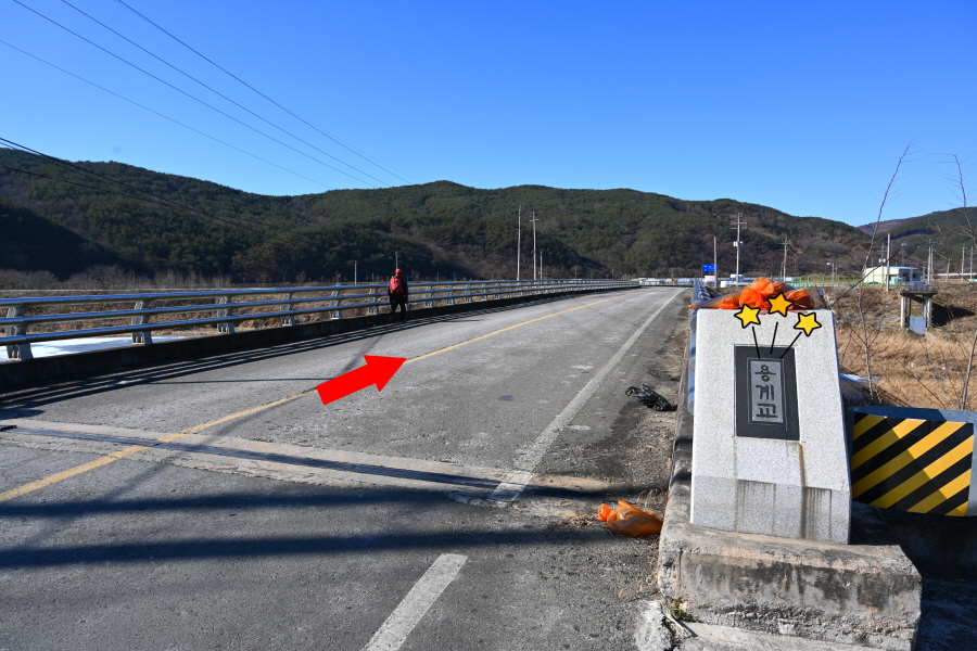 용암서원에서 약 25분이면 나오는 용계교를 건너 선비길은 왼쪽으로 제방과 연결됩니다.