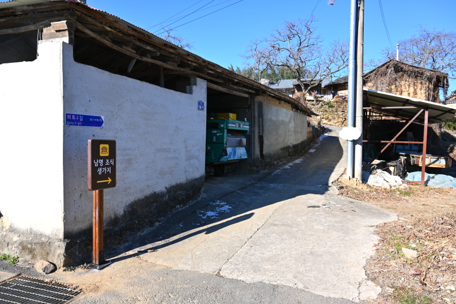 남명조식생가지는 경로당 오른쪽 길이며, 마을 주차장에서 오른쪽 골목 끝에 복원한 생가가 있습니다. 조식선생이 1501년(연산군 7) 6월 26일 이곳 외가에서 태어나 다섯 살까지 살았던 집입니다.
