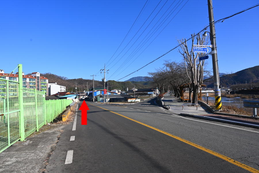 남면조식선비길은 오른쪽으로 틀어 강을 거슬러 올라갑니다.