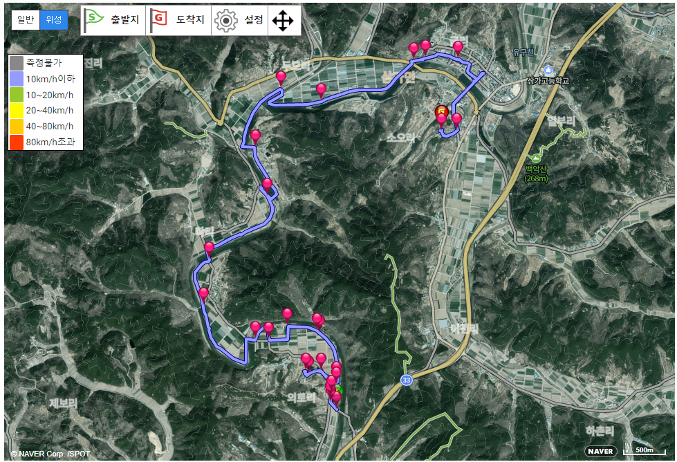 홈페이지의 코스안내에는 ‘외토리~금리 약 9㎞, 도보 2시간, 자동차 15분’이라 표시돼 있었습니다. 9㎞ 거리는 남명교에서 삼가향교까지 도로가 그쯤 되었습니다.