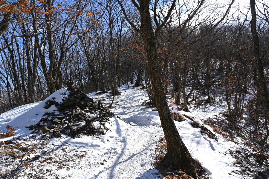 덱 계단을 내려가면 천왕단 아래쪽에 있어 하단으로 불리는 제단을 지나 10분이면 갈림길이 나옵니다. 왼쪽 문수봉(2.1㎞)으로 갑니다. 오른쪽은 백두대간 길.