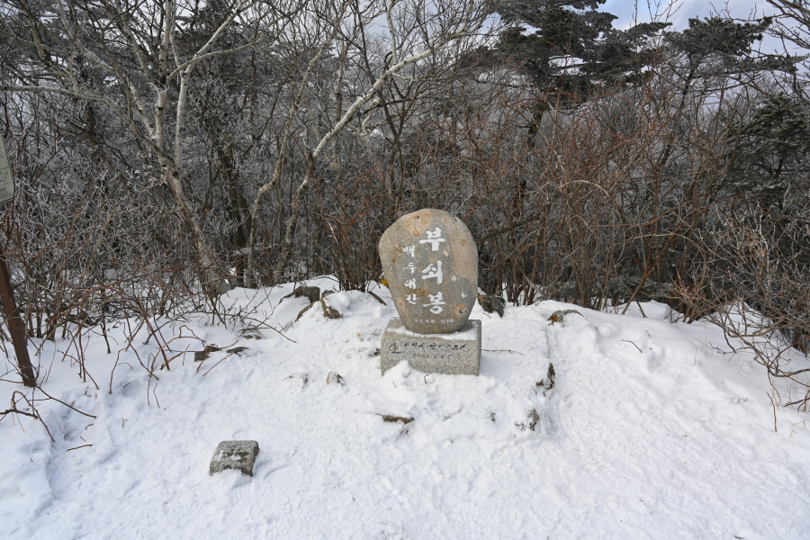 헬기장을 지나면 부싯돌로 쓰이는 돌이 많은데서 유래한다는 부쇠봉 정상이고, 직전 갈림길로 되돌아가 오른쪽 문수봉(1.8㎞)으로 향합니다.
