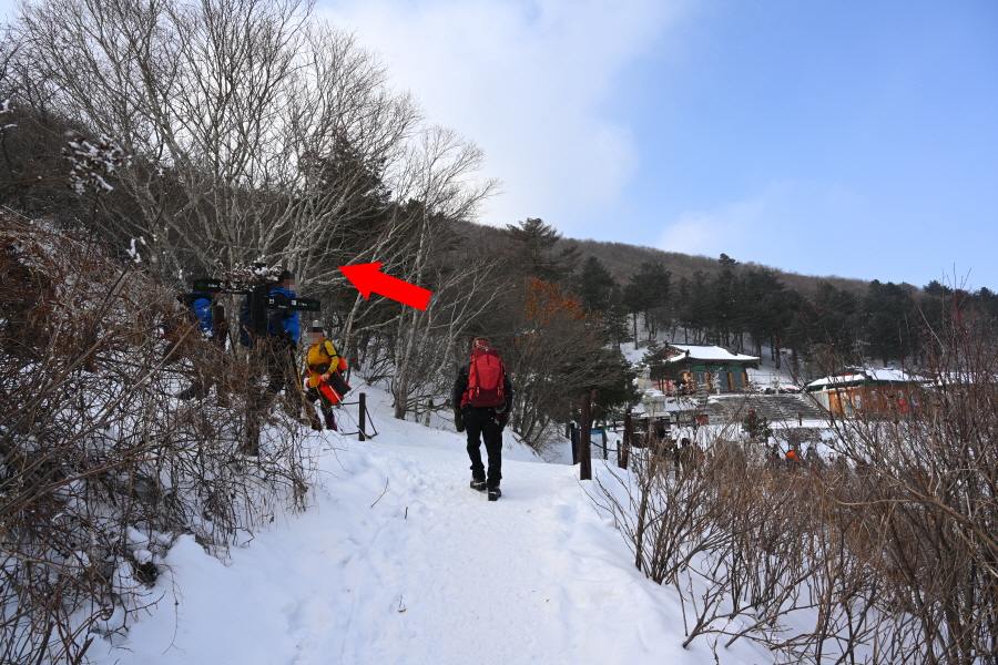 덱 쉼터와 백단사 갈림길을 지나 30분이면 나오는 백단사 탐방지원센터 앞에서 왼쪽으로 꺾습니다.