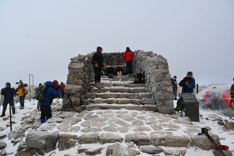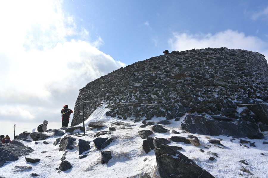 다시 15분이면 ‘크게 밝은 뫼’를 뜻하는 태백산의 주봉인 장군봉 정상에 섭니다. 세 개의 제단 중에서 가장 북쪽에 있으며, 장군단으로 불립니다.