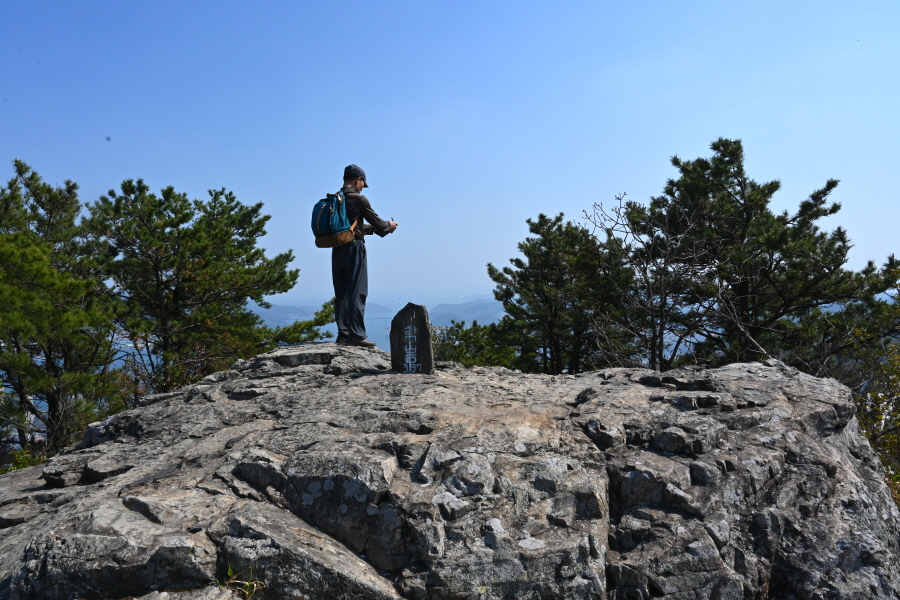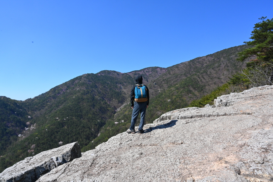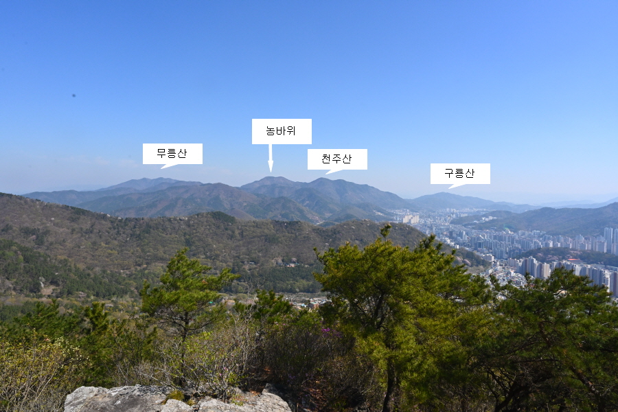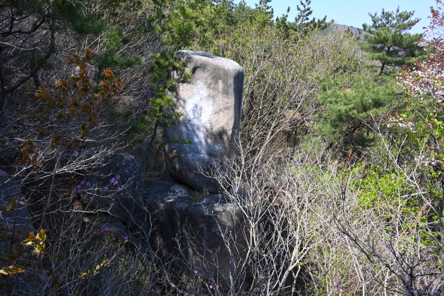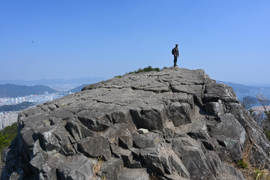 암봉에 십(十)자 모양으로 갈라진 납딱한 바위는 일제강점기 항일독립운동가인 주기철 목사가 기도하던 바위로 주위 조망은 시원하다 못해 황홀하게 열립니다.
