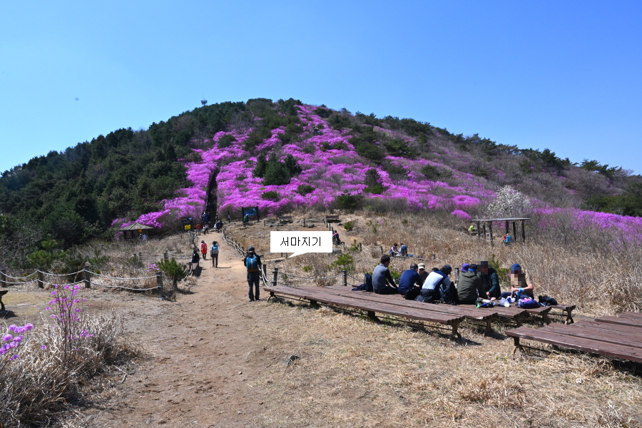 그래도 ‘세 마지기’를 뜻하는 ‘서마지기’와 정상 동쪽에 진달래 만개로 분홍색 불기둥이 타올랐습니다. 올해 무학산 진달래 산행도 시기를 잘 맞추고 찾았습니다.